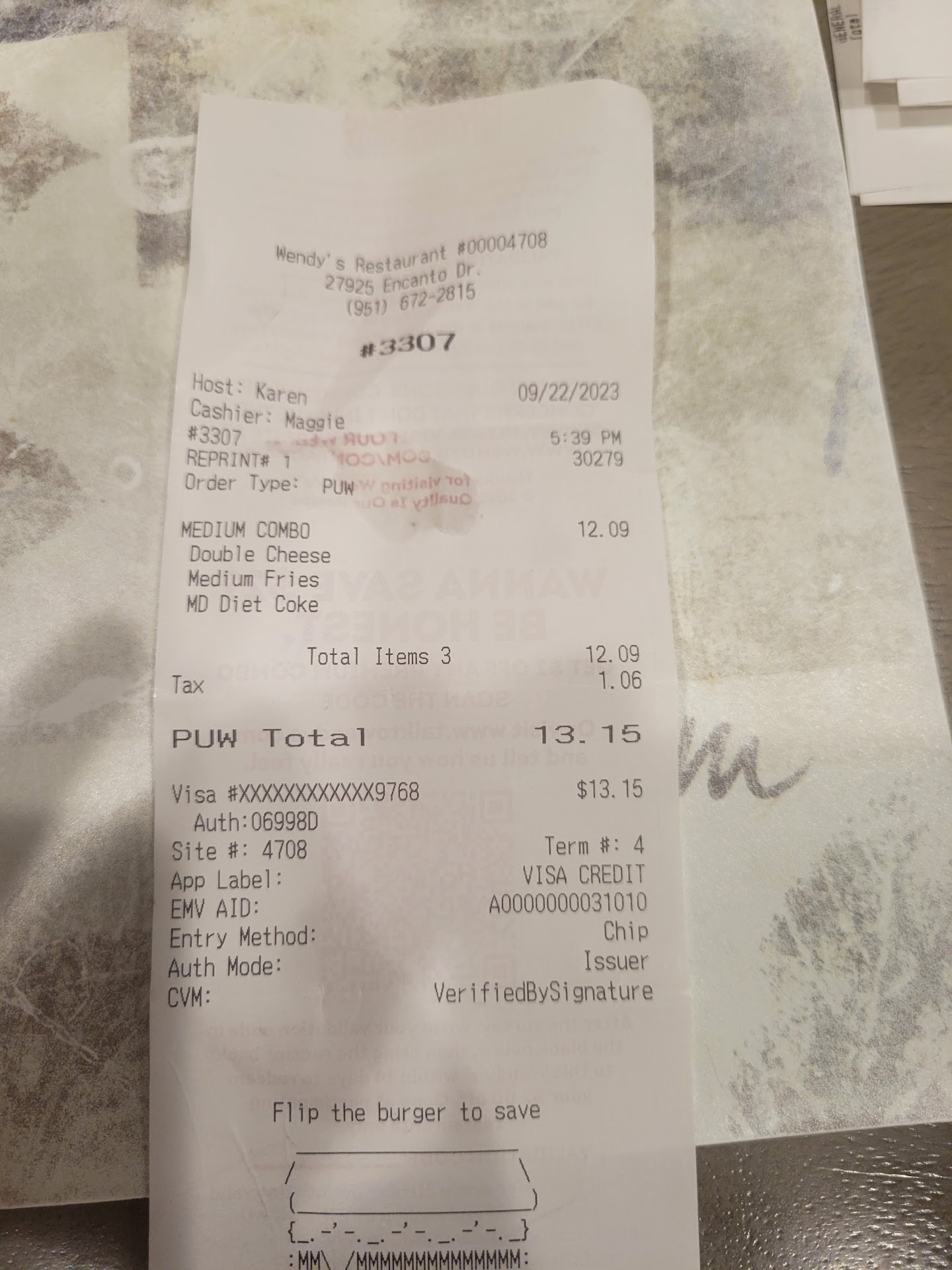 Such a disappointment. I've been pretty happy with that Wendy's food, and service from other employees.