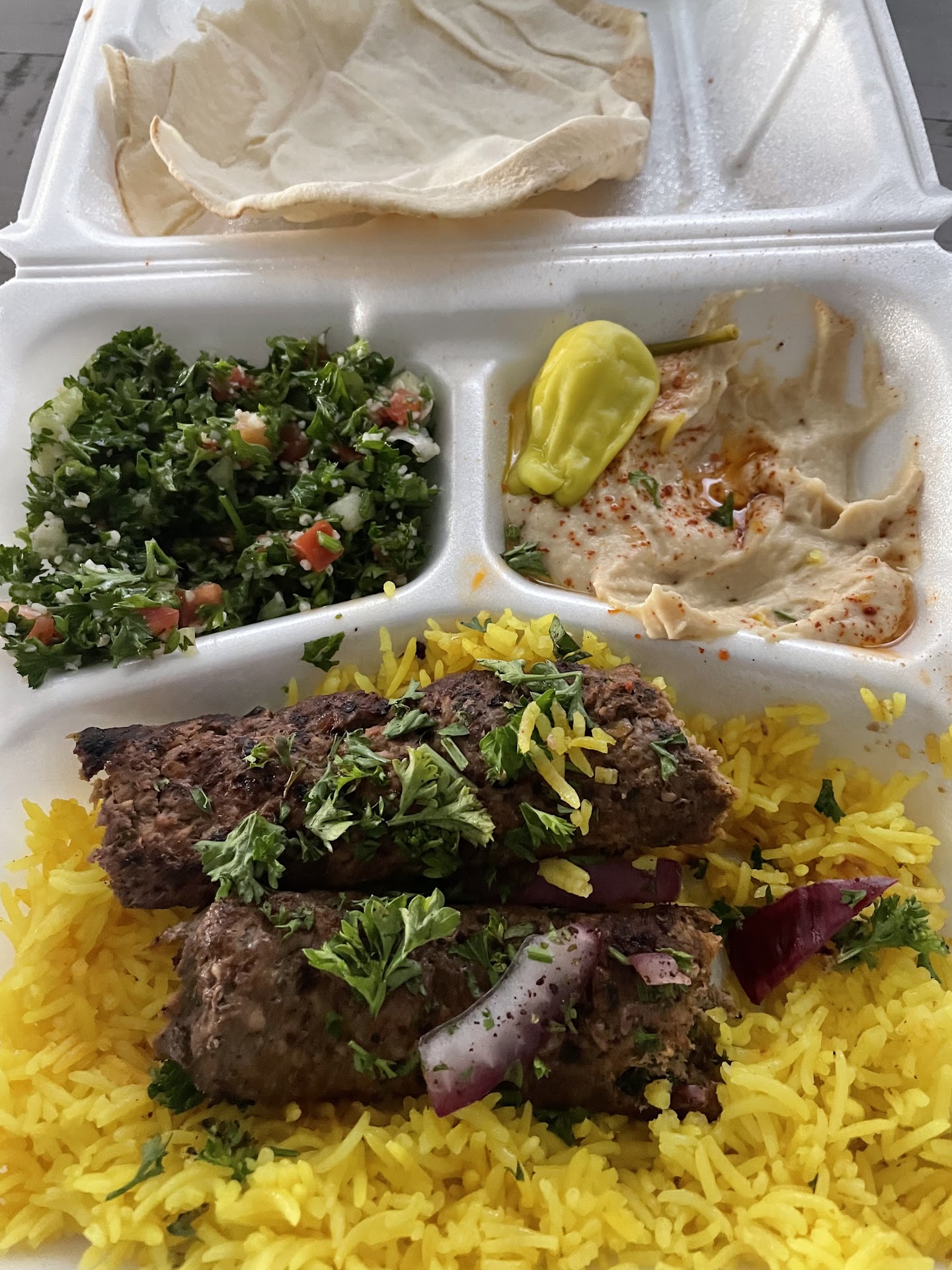 Ordered 3 chicken kabab plates, falafel and extra pita.