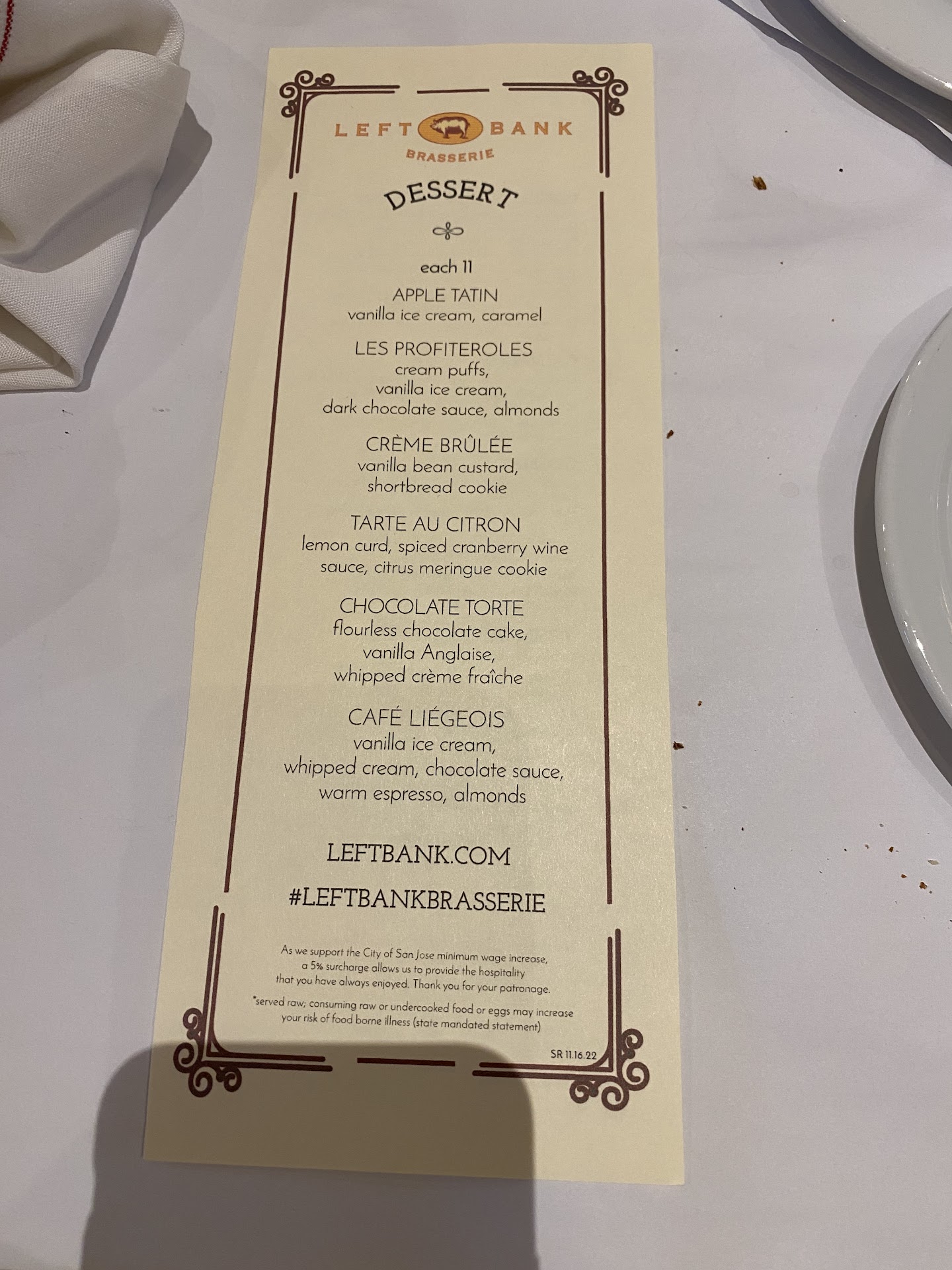 So I made a call to Left Bank and spoke with the general manager, who patiently listened to the details of a disappointing experience. He offered to send a gift card, which arrived and which is quite...