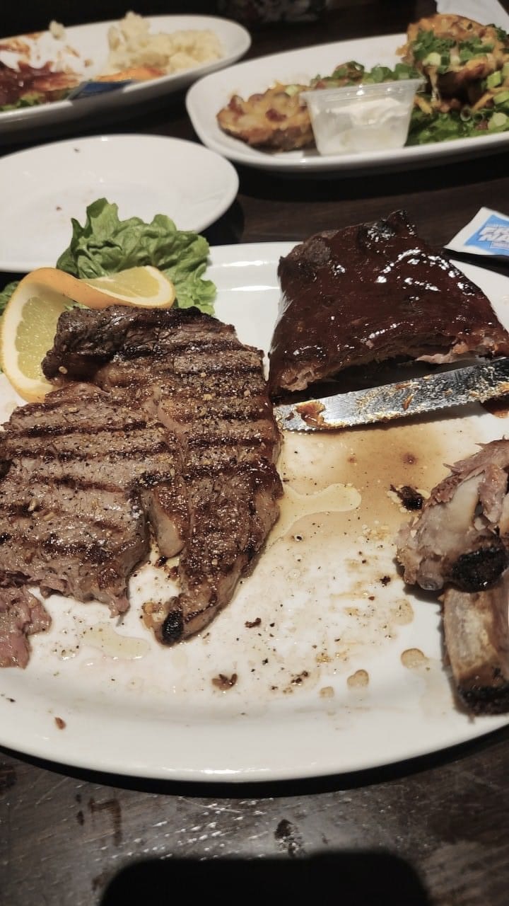 Read moreWe arrived for linner around 230 pm 4-20-24. (Linner=late lunch early dinner) place was cold, never felt comfortable, never took off hoodie, noticed most everyone else was not taking off coats. Server? I didn't catch his name, tall skinny kid with black hair...did a good job however I didn't eat much. I ordered a 22-23$ 1/2 steak 1/2 chicken bourbon glazed mixed veggie on rice... served on what I thought would be a boiling hot cast iron pan on a wood block. Room temperature cast iron...room temp food. Server even commented "be careful esp for the potato ...is very hot!" Nope. I had 5 pcs of steak, maybe 8 pcs of chicken, was all I ate and a little bit of veg. Butter with bread was ice cold hard as a rock (butter not bread), some kinda cinnamon butter cup for bread was frozen as well. Server apologized at the end, told him it's not his fault my lunch was low grade dog food, he stated gave me 50% bill with an unsweetened ice tea ($3.50) came to around 19 ish plus tip in the end. I tipped over 20% on top of what would have been the full bill, again, not the servers fault. I guess maybe it's my flaw for not sending stuff back but my theory is if someone comes to a restaurant, orders your food vs stays home and cooks for himself it should be well worth my time and effort and $$$ and better than I can make. Ummmm...It wasn't. Probably too many things on the menu...am I the only one watching Gordon Ramsey going to restaurants where there is wayyyy too many things on the menu isn't surprised the food sucks? It's like they're trying to please too many people vs taking the time to get less items perfect and more items imperfect. I won't be returning...