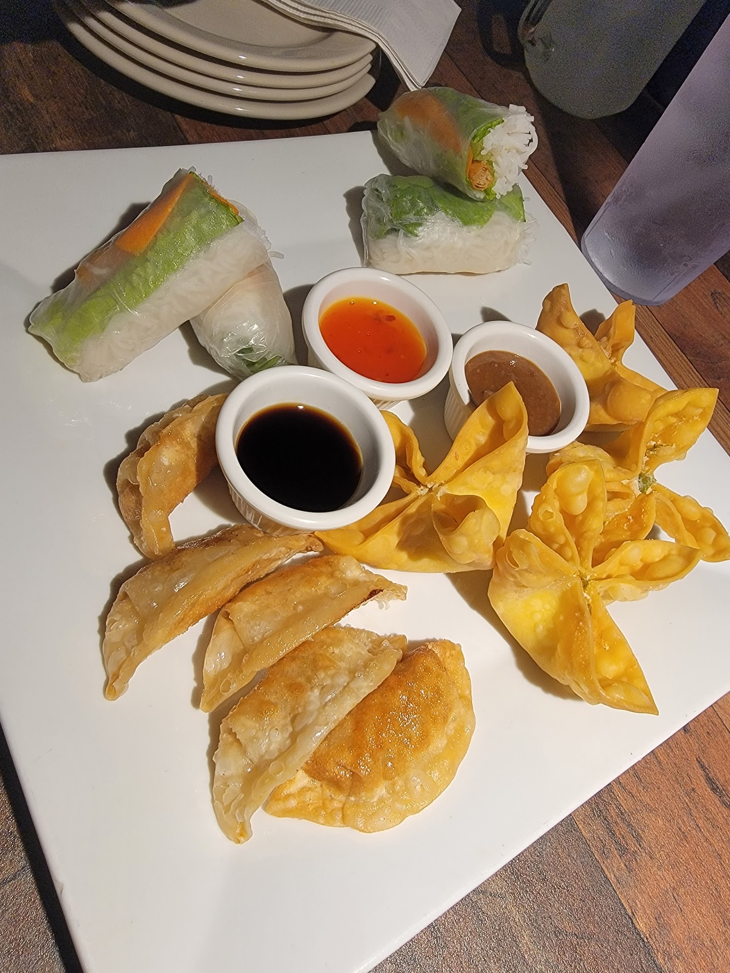 My mom wanted to check this place out, so of course, mom gets what mom wants, lol. I'm always weary going to Vietnamese places around town because I always compare everything to my mom and grandma's Vietnamese home cooking. The last few times I took my mom to a new Vietnamese place - it ended up being absolutely disastrous, sooooo with that being said, I did not have my hopes up about this place. Let's start by saying the ambiance is.... strange. It's dark and the Vietnamese hat lanterns overlooking each table is sooo low, it kinda gets in the way. I would imagine it to be particularly awkward for a person a lot taller than me. (I'm 5'5) Also, the debris/dust from the lanterns flying around is off-putting when you've got food in front of you. We ordered the appetizer sampler with crab rangoon, fresh spring rolls and Hanoi dumplings. The crab rangoons were the best of all three choices. The spring rolls has a fried rolled wonton in the middle which I have never seen inside of a fresh spring roll before. To be honest, it was unnecessary and didn't do the rolls any justice. If it could be replaced with some basil and cilantro, their rolls would be so much better. I didn't care for either the peanut sauce or dumpling sauce. For entrees, we got the pho with beef and chicken, the bun bo hue and the bun thit nuong. The pho was the winner out of the three. I do wish that cilantro was provided on the side dish of accoutrements. The other two weren't horrible but just nothing to write home about. One thing I will point out is that the nuong in bun thit nuong means "grilled/charbroiled. 90% of the Vietnamese restaurants that I have had this dish at, does NOT grill/charbroil the pork, which is essentially misleading. I threw the pork in the airfryer once we got home, and it gave it a nice sear it so desperately needed. Service was alright. However, management should inform their staff not to present the check while guests are still eating. It gives the idea that the guest should hurry up and leave or make them feel unwelcome - which is a big no no in the restaurant industry. Also, I was not offered a high chair for my daughter, so I ended up getting one myself. When I picked it up and brought it to our table, my fingers were completely sticky from the chair, which was super gross. The highlight of the meal was the Vietnamese iced coffee - some of the best I've had, and trust me, I've had A LOT. Lol 🤤 I do wish this establishment the best of luck. I know that they're on the newer side and hope that they read reviews and take criticism from guests as a chance to improve instead of in a negative light. However, after our first experience here, I will probably not...
