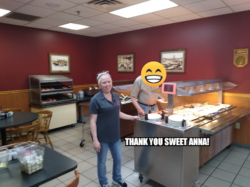 A little later my partner came back and told me about this wondrous meal he had at the diner here. I went in and let me tell you... had some of the best pancakes I've ever had! The type that just melt in your mouth!😋 I ordered the 2 pancakes, bacon, eggs & hashbrowns all for under $8. The pancakes were so good I ordered 3 more! Yes, thats right. 5 delicious blueberry pancakes went down the hatch!😁 . Today it was the lunch buffet. Salad bar, chicken, meatloaf, fishsticks and dessert...all for $10! No matter which waitress we got, they were all friendly as can be. I even asked sweet Anna to take a picture so I could give them props. 😊 I can hardly move as I write this but just had to let everyone know about this hidden💎 of...