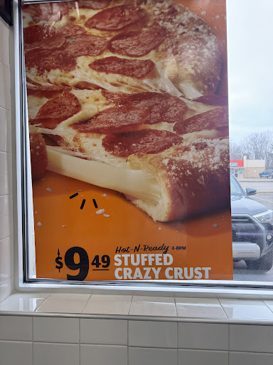 I donāt believe Iāve ever had any food from this establishment in my entire almost 50 years on earth. I was given a coupon for a pizza and another coupon for crazy bread. I chose sausage pizza upon the employeeās suggestion when I asked whether sausage or pepperoni was better. I also got crazy bread - was asked if I wanted marinara sauce or cheese sauce. When I realized it was liquid nacho cheese type sauce, I chose marinara. Instantly the items (pizza, crazy bread and marinara sauce) appeared on the counter. Didnāt see it being brought from the warming oven. Ate one piece of the pizza. Wasnāt steaming hot or anything great. Crazy bread was yummy until I realized the marinara was cold. Not hot, not warm, not refrigerated cold, but cold. Wasnāt turning back as I was already on the highway - but every dipped bite I cringed and wished it was hot. I would like to try the stuffed cheese crust I saw advertised in the...