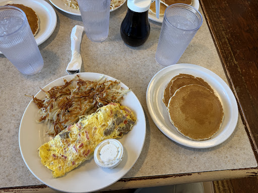 Read moreThree of us went to eat just now. The hostess/cashier couldn’t tell us how long a wait it would be. When we checked out and I told her that I wanted to just pay for mine, her answer was, “added on?” No...on the receipt I just handed you. Then our server had to come and use the calculator for the cashier to get the new totals for us. How do you have someone who can’t do basic addition and subtraction be the one who handles your cash? It was rather busy and our server looked like she was the busiest server in the restaurant. They had one guy who’s only job, apparently, was to push a bus cart back to the kitchen once every 3 minutes. He didn’t run food even though that was where the backups were happening. The “stuffed” French toast was okay but it was drowning in strawberry sauce. It’s hard to mess up French toast but... There was a sliced onion in between the two slices of the French toast (that constituted it being “stuffed”). The burger wasn’t good - not even medium rare. We will say that the French fries, cheese curds, and the waffle were good. Though, again, hard to mess those items up. Maybe when they aren’t busy they do a better job but we left unimpressed and would caution anyone going in...