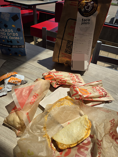 Read moreThe two main food items I get at this location are the cheese quesadillas and the potato olés. I love getting sour cream and nacho cheese with the olés and also putting sour cream on my quesadillas! I also would like to mention that I have not had a problem with any of the staff and my food has come out in a timely fashion while still tasting great! As for the price of the food I believe that it is fair especially since the food is pretty good! There are many pros and cons of both Taco John’s compared to Taco Bell so for me (personally) I will list a few... Taco Bell- pros: Cinnabon’s, closer to me, good bean and rice burritos. Cons: no potato olés Taco John’s- pros: better quesadillas, potato olés Cons: no Cinnabon’s and far away.