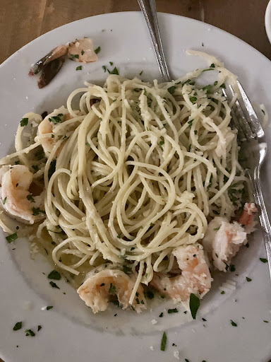 For entrees, she had the linguine al lemon with added shrimp. While the dish itself was delicious, it could have done with another shrimp or two for the price. Still good quality though. For my part, I had the NY Strip which was charred to a perfect medium-rare (I don't see how he did it, frankly), and accompanied by terrific "crispy broken potatoes." Fantastic.