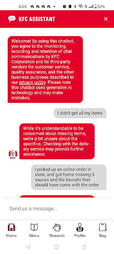 I ordered online, and got home to find several items missing. There is no phone number on the receipt to call. So I went to the app to see if there was contact information. I am aware of the number being in Google maps, but as I was already in the app, I used the AI overlord chat assistant.
