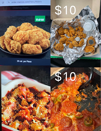 I’m officially done with Marco’s forever. I ordered 3 items, picked it up, got to my car and checked the first item, the 10 boneless chicken wings, and was so shocked I didn’t check the other items. I took it back inside and apologized and said it was my first time ordering them and I wanted to know if what I received was typical. They said yes. Still too stunned to speak more on it I just left and went home to try and make the best of it. Upon checking the next item, a “pizza” bowl, I realized it was made incorrectly. Also, the first time I had ordered the pizza bowl. I didn’t realize it was just a thin layer of cheese with some toppings. When I read “crustless pizza bowl” I assumed it was like a personal pizza without a crust (the part without toppings) not that it had literally zero bread at all. The toppings were also all incorrect. Miraculously the 3rd item was correct. I will not be returning. But Marcos, if you’re interested in some feedback, please take the “boneless wings” off your menu. That is an absolute embarrassment. And rename your “pizza” bowl something that makes sense, like “melted cheese with toppings just enough for a child to eat”. Keep the $30 if you’re that hard up. I shared a picture of the side by side what is advertised and what I got. Guess which...