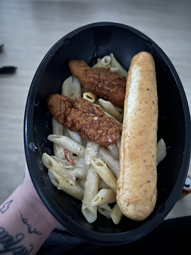 I ordered food for delivery back on tuesday the 23rd. I ordered the 4 cheese mac with the honey chicken and a Caesar salad. My food got to me at the appointed time as it stated on the website. I get my food and sat down at my desk to watch youtube and eat. Salad was fine, and i pulled my pasta up to start on it.
