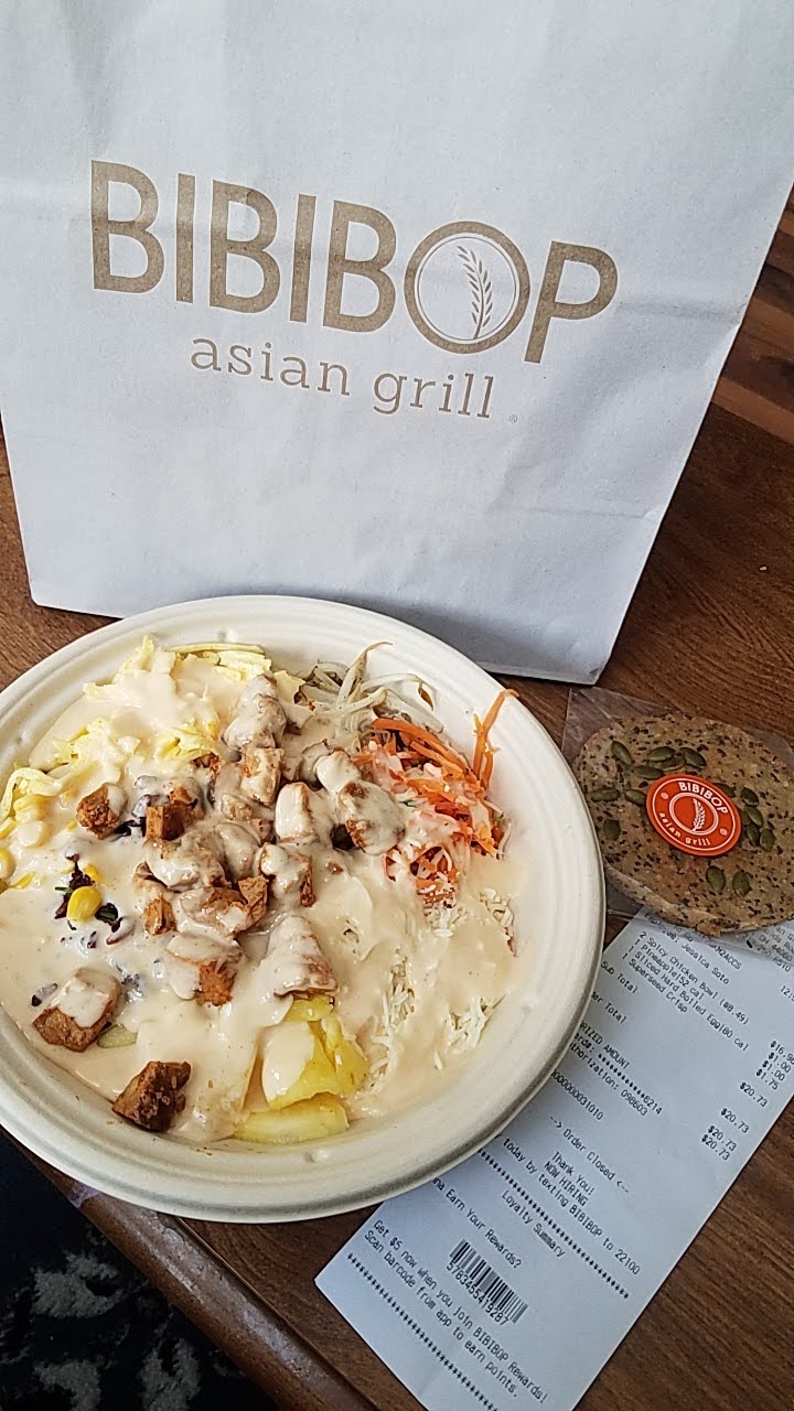 Read moreFrom being enthusiastically greeted at the door, to the great food, not to mention the aesthetics of the decor, it was a wonderful first experience at Bibibop. The staff was friendly and patient with first time visitors. They were very quick to neatly put together your order. There was a really good selection of items to build your own bowl, and they had a lot of interesting sides available at the register. I regret not getting the crisps that I saw, because I'm sure it would have been tasty. Maybe next time! The establishment was clean, and not overly decorated. Simple decor and a very nice layout for indoor dining. The only thing I could suggest is some adjustable blinds at the booths, because the sun, as wonderful as it was, was almost blinding on the white tabletop.