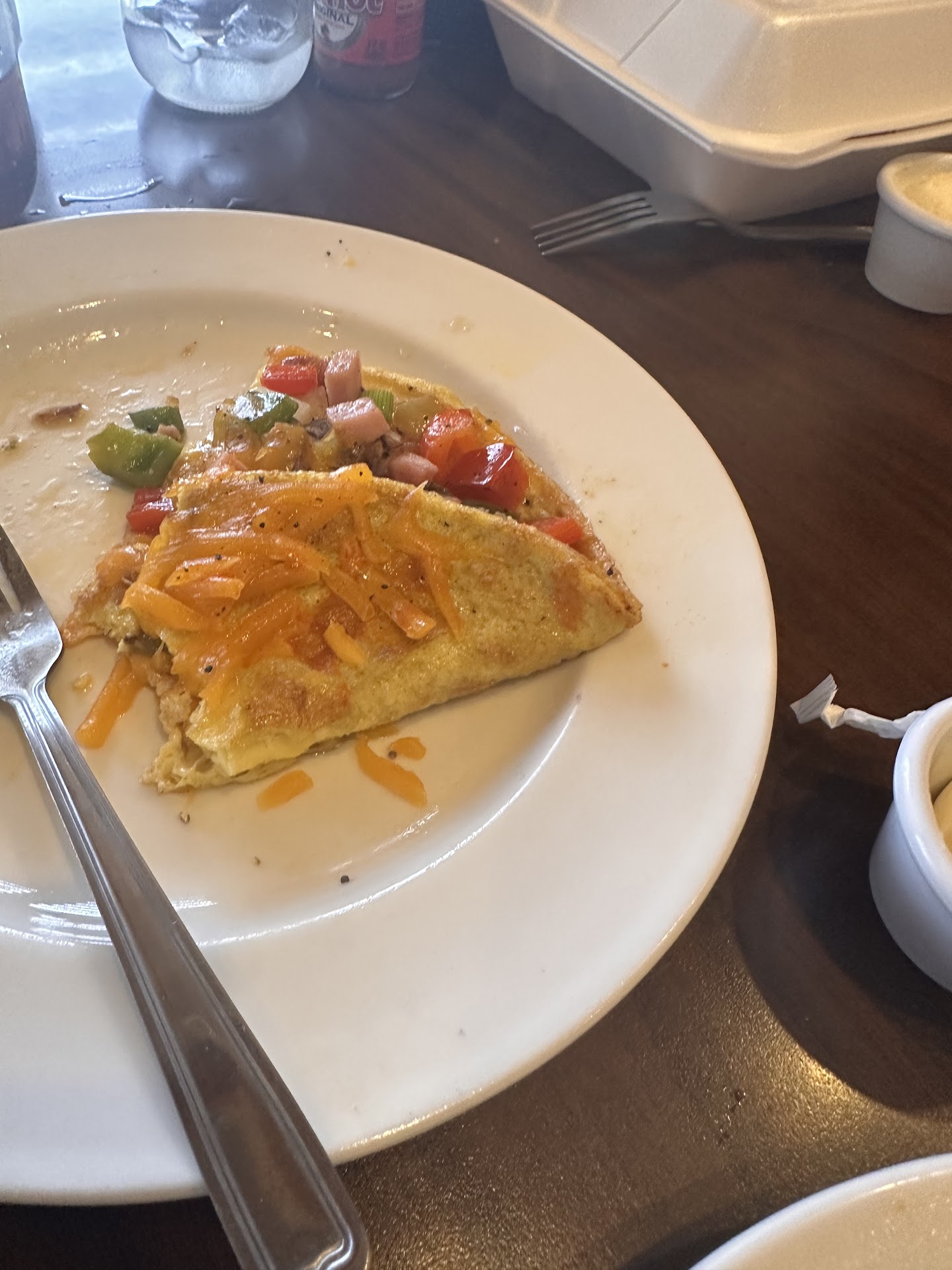 Our waitress was PHENOMENAL but I unfortunately don't remember her name. Her personality is what we need to see at any restaurant when we're being served. She makes you smile and laugh while you're enjoying your food. I had no problems with my breakfast. I got the blueberry pancakes. They were amazing! The reason I gave the food 3 stars it's because my dad was extremely disappointed in his food. He got the french toast with fried chicken and was very excited to try it. Unfortunately, the chicken was very hard and rubbery, so he had a hard time eating it. I was having a hard time even cutting it for him. I let our amazing server know but I wish I would have asked for another meal to be cooked for him because he went home very disappointed and hungry. He did not feel good the next day. I'm not sure if it's because the food. Hopefully he doesn't experience any problems with the food in the future because he said he was looking forward to coming back again if he can get something served that...
