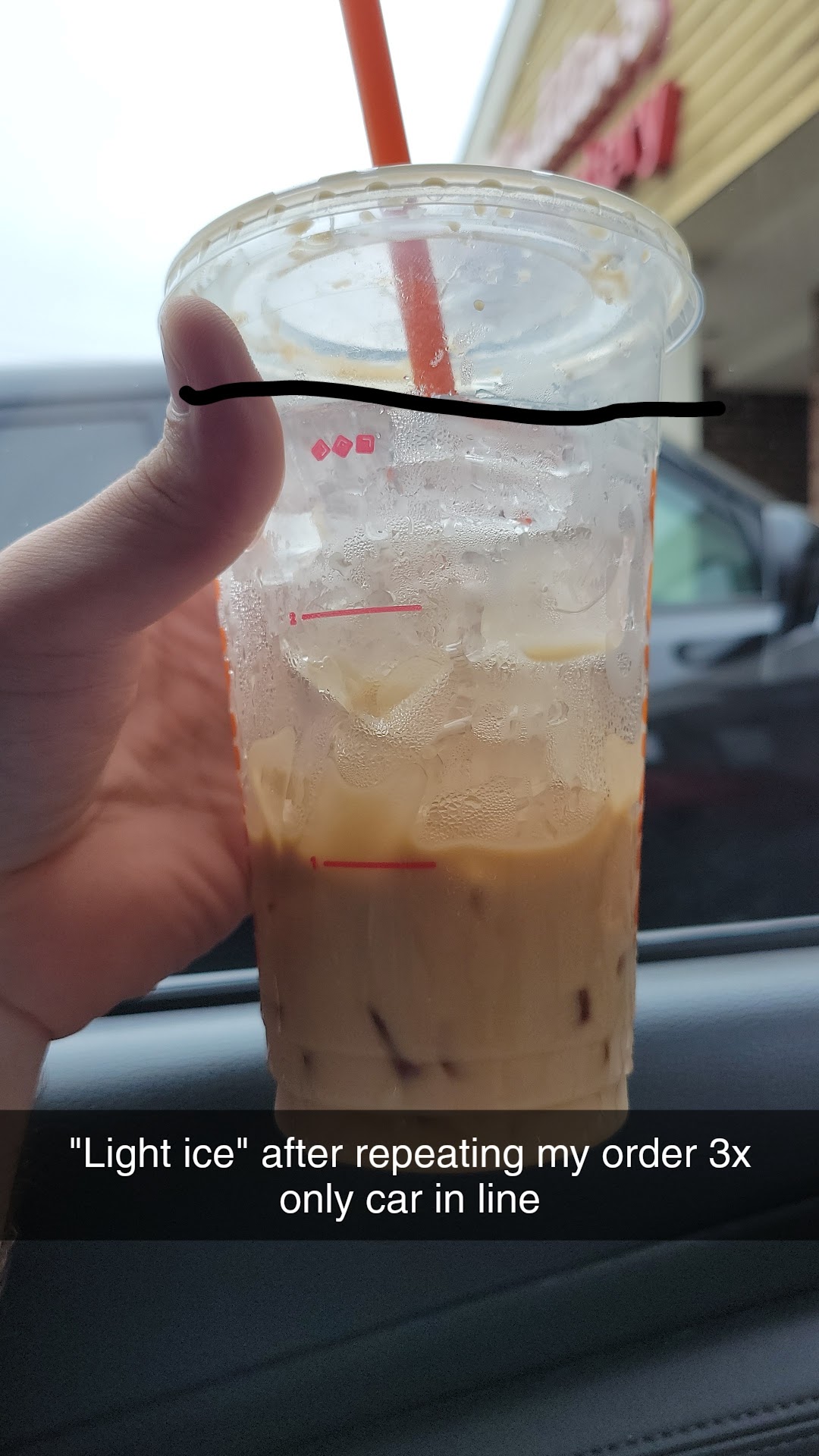 Today I ordered a donut (which was wrong, again) and donut holes. They put the donut in the bag then dumped the assorted (I ordered just glazed) holes ON TOP of my donut. So everything was one big mess by the time I got home.