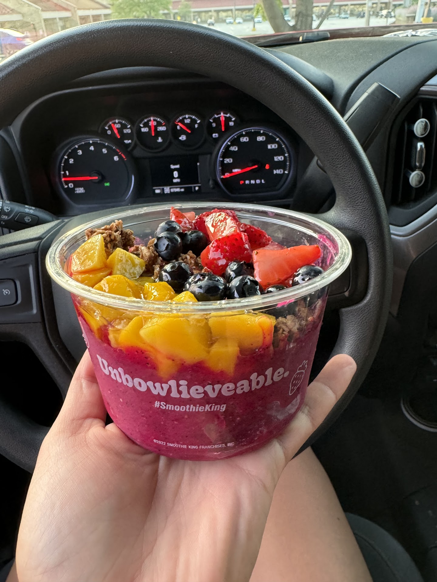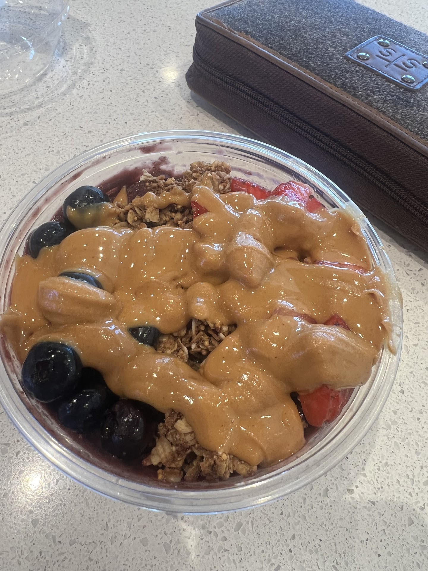 Read moreI enjoy the PB Swizz Açaà Bowl, at times they are hit or miss. Often times great, consistent texture, other times a little watered down texture. I enjoy the no bananas and sub strawberries, for some reason staff will try to skip out on the sub strawberries and just leave the bananas out which isn’t fair, but I always double check to sure I get those strawberry toppings :) it’s happened twice and each time I have a concern the staff is typically there to correct it!