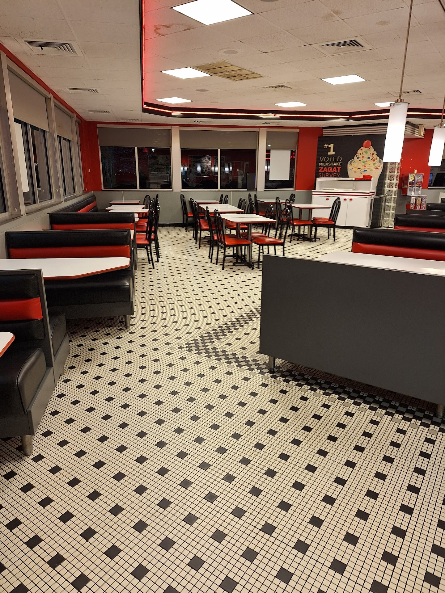 Read moreHorrible service, though I blame it on the management. We waited for 20 minutes to be sat without being approached about a wait, even though there was barely anyone in front of us, and the table they sat us at had been open the entire time, simply needed cleaning. We were sat and waited another 30 minutes to even be approached by a waitress to take our order, or to even get water. Only 4 out of the nine ordered actual food, and 5 others ordered milkshakes (9 people in total). Food came out pretty quickly, but 45 minutes after our order was taken, we still had no milkshakes. My friend and I got up and told an employee about our situation (waiting so long to be sat, have our order taken, and still no milkshakes), and he ignored us for a moment, than looked up annoyed, and asked if we wanted him to comp anything. That was fine, and we sat back down, where we were approached by a manager who explained he had been short staffed, but they really expected us to be "more patient". Milkshakes came out a minute later, with 3 shakes tasting burnt or not fully mixed, one being forgotten and brought back as the wrong shake, and mine having a hair in it. This is by far my worst...