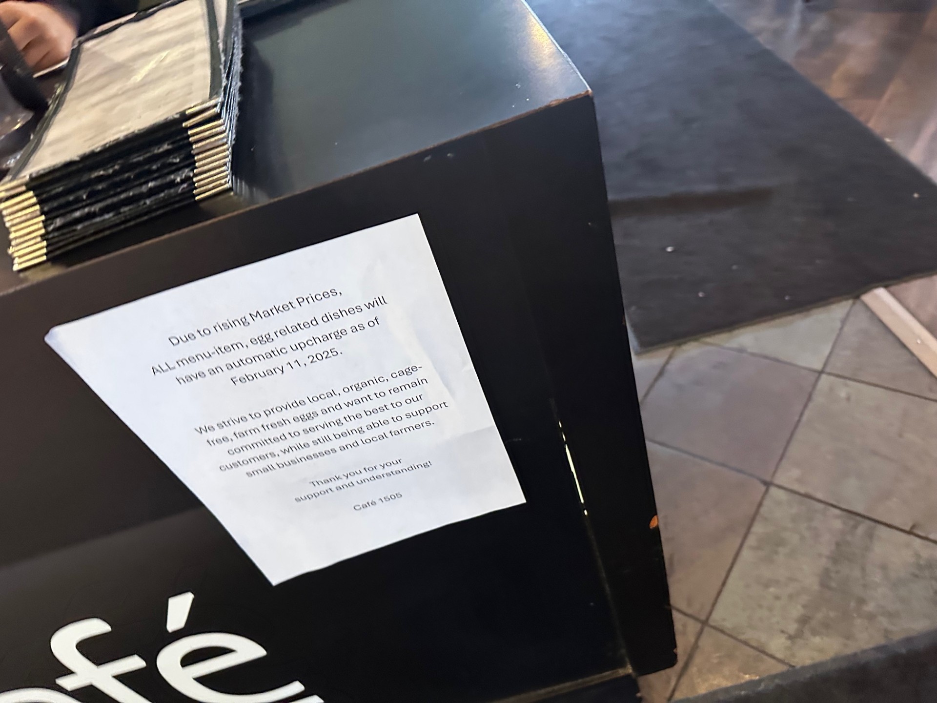 Yep. Perfect response from the sort of pompous vibe this whole place has. Right now (2/22/2025) as a business owner, I can get FIVE DOZEN eggs from Costco business for 13.99. So let me “educate you” or anyone else. That comes out to less than 25 cents per egg. I have to assume eggs cost something prior to 2/11/2025… but somehow, now after all this hysteria about eggs, they cost this one business only, A DOLLAR MORE per egg. A dollar! lol. Cmon. Educate yourself on what a scam is. This. This is a scam. You’re misleading people about what an egg costs, and for some reason not willing to change the price on the menu to reflect that. Yep, you bet. I’ll eat my dog before I go back. I don’t care about how any owner feels about anything. I care about being charged what the menu says I should be charged. Pretty basic stuff here. Apparently this place was paying 2 dollars per egg before. And now, with the 53% increase, they are passing the extra dollar that egg costs on us. Seems totally legit! And to be fair, the people that made us go here said they only get lunch usually. So maybe that’s better? But also, take 10 steps in either direction past the egg cost signs, and you’ll see a bunch that tell you how to parent or otherwise behave. Again, anything inside the actual menu, you know, the thing people use to choose what to buy based off at least in part, the price… anything in there that tells me it costs more, fine. Without that, it’s misleading at best. I’d contend it’s against Wisconsin State Laws to post a price for an item and then charge someone more than that price.