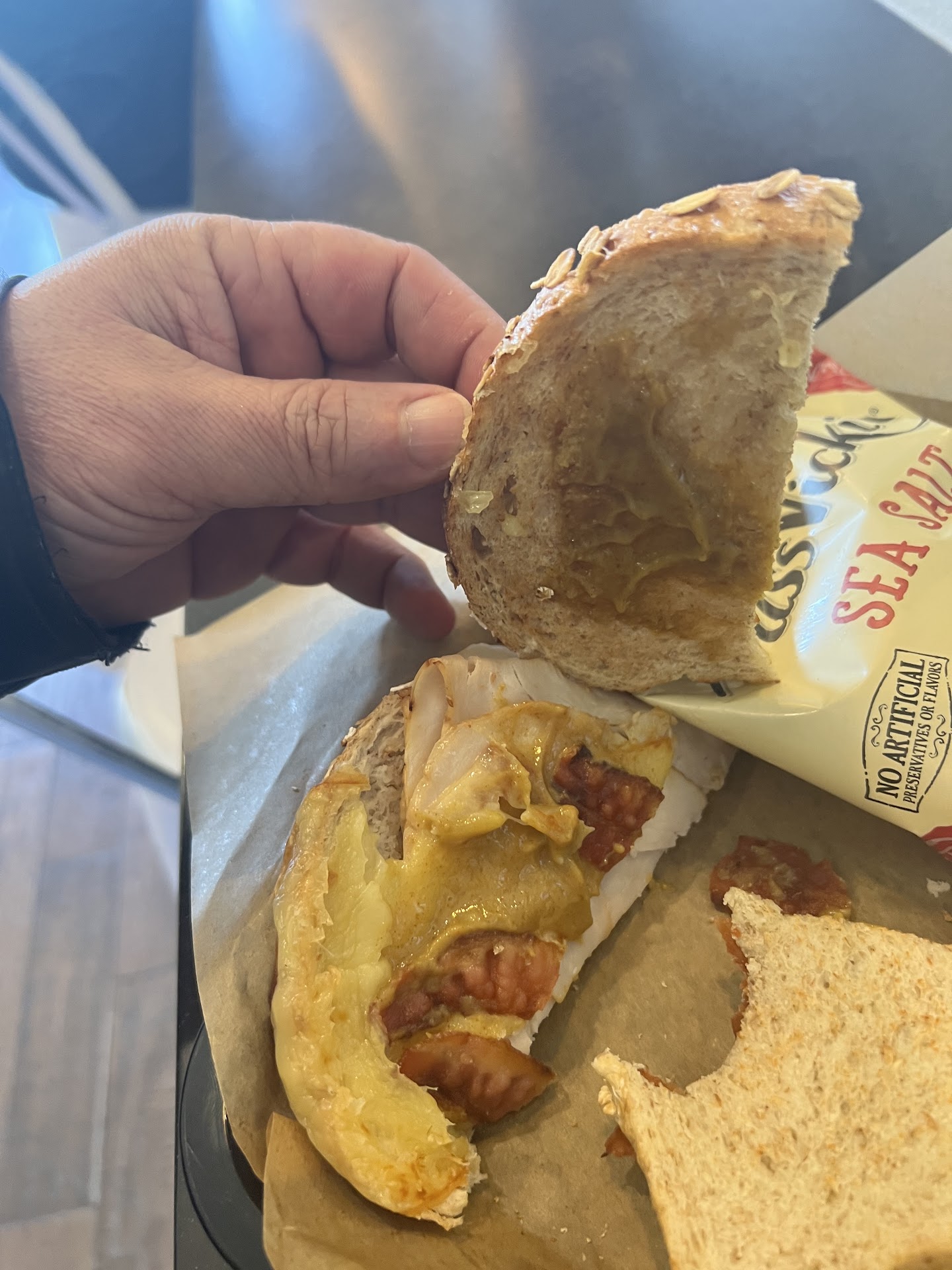 For breakfast, I ordered the sandwich and it was fantastic - the sauce was amazing, and I could tell everything was freshly made. I also tried the new seasonal bakery items, including a scone, and they were both really good.