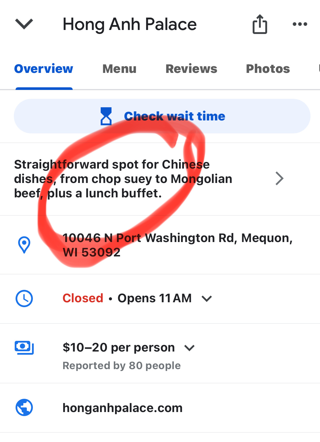 I wanted a nice Chinese buffet lunch. I looked up this restaurant that I used to visit frequently. Google map information stated there would be a lunch buffet.