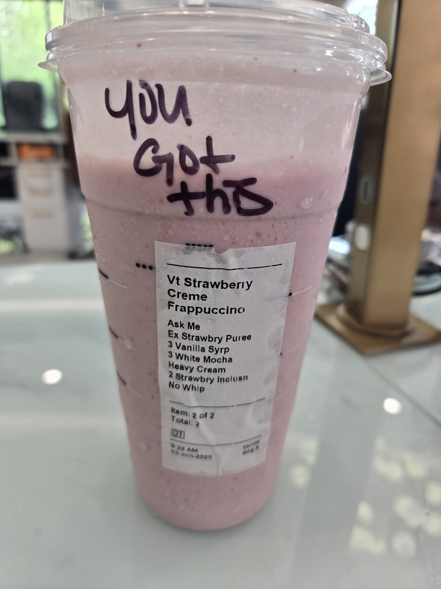 Read more6/3/25- Very good today, whoever made this drink this morning and left the very lovely message was a lovely topper to my day. Thank you.