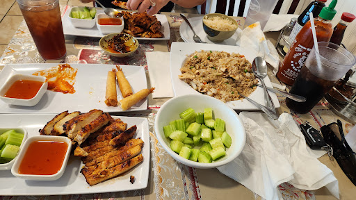 I really enjoy New Thai Cuisine. Most of the time we order take out and pick it up. This time we came to dine in around 630. Tonight happened to be a busy night (Friday and the first). We didn't have to wait too long for a table and were informed that food was taking 15 to 30 minute wait. We did not mind waiting bc we know the food is really good. We ordered an orange chicken, pad Thai, and fried rice. Fifteen minutes later the waitress came over and was real sympathetic about their rice maker not coming properly. We ended up ordering bed and broccoli and instead of sticky rice we got steamed vegetables instead. I must say that I was extremely happy with the broccoli and beef, it had lots of garlic and I could taste the fish sauce and the steamed veggies were delicious. The shrimp pad Thai was wonderful as was the orange chichen, as it always is. This is a place that my picky eater 13 year old will eat at. The three dishes and a soda was a whopping $35, you can't beat that! We even had left overs! We will definitely...