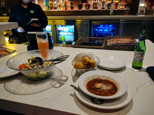 Read moreNegatives: I've attempted to eat here 2x before this time and the wait was literally 1hour and 30 min long! It was that long today as well.. and it was just 2 of us. The parking lot was small and you should give yourself ample time to find parking. I was not offered water & I ordered alcoholic beverages 1st thing. The middle restroom had urine all over the seat. My food was not offered to be boxed up for me or given bread bags for my left over bread like the 2 tables on both sides of me were. I had the 2 plastic boxes and bag lasted on the table for us like any other restaurant. I polietly asked the waitress why the shrimp scampi my friend ordered had such fewer shrimp than the shrimp Alfredo I ordered. She went to ask the cook she said he said the scampi gets 9 shrimp and the Alfredo gets 16. Ok there's a consistency. I also asked why I did not get water line all the other tables and we were not offered to have our left overs boxed up she said she just was so busy with all the tables and forgot. Positives: Dawn our waitress was nice! She was just forgetful although she did not forget the table next to us. Maybe it's cause my friend said he didn't like restaurant ice? I will never know. The food was really good. We had a appetizer the Stuffed Ziti Fritta, 2 drinks each, a Italian Margarita and a Blue Almafi that comes with the shot on the side. My bidirectional had the Italian Margarita as well and a Spiked strawberry lemonade. I had opted for the Salad that was delicious and he got the soup Chicken Gnocchi which was a delicious chicken dumpling soup. For the entree I had Shrimp Alfredo and he had Shrimp scampi. Although it was very good I was expecting the shrimp to be a little bit more seared than pale. But it was cooked alright. For dessert we shared Sicilian cheesecake with strawberry topping that was pretty good. Jenn who served the salad had a awesome attitude and was very friendly. Eduardo who served the table next to us was really on top of his game! He gave them water and offered them to box up their food was friendly and checked on them often. My bill came to $103.66 I did leave a tip but I was also friendly and understood she seemed under pressure. Nothing was offered to us as a gesture of apology for the missed opportunities in our dining. We were given a chocolate mint each at the end of our meal. The atmosphere was lovely and overall the dining area was clean. I really wanted to give this place 5 stars but I want to be truthful to our first experience. Hopefully I'll come back and the service...
