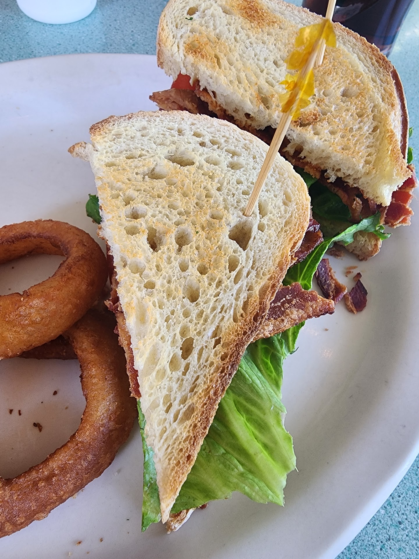 On the bright side, the server was personable (though rushed) and everything seemed clean. We were seated promptly on the lovely outdoor patio and server brought water and a soft drink for my friend right away. The server was honest about what he didnโt know and didnโt try to guess about whether certain foods might have flour or MSG. The server refreshed my friends soda and our waters without us needing to ask.
