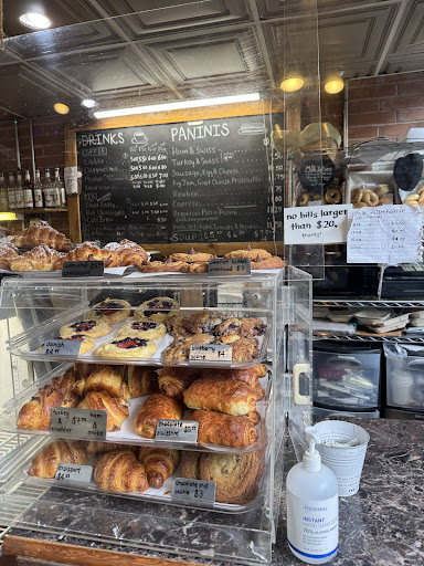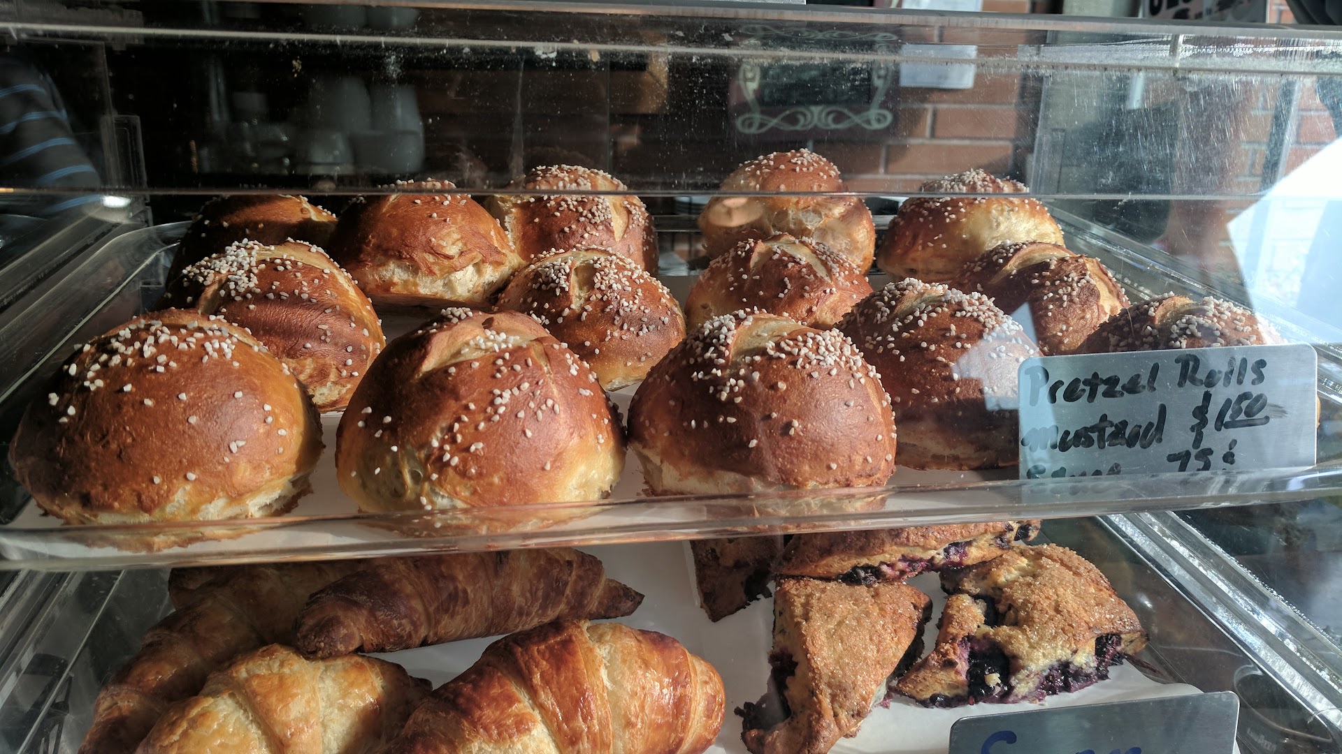 We ordered a Turkey/cheddar croissant, a berry/cheese danish, and a pretzel roll with mustard. Also a cappuccino and hot tea. Our order was ready almost instantly, but was perfectly hot.
