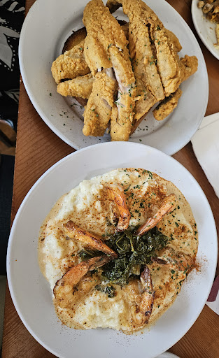 And the food? Absolutely delicious. From the creamy shrimp and grits to the perfectly seasoned fried fish and crispy chicken tenders, every bite was on point. The scrambled eggs were fluffy, the French toast was sweet and golden, and the salmon was tender and flavorful. They even had juice options that hit the spot — I went for a classic lemonade and sweet tea mix, and it was chef’s kiss. Plus, it’s a buffet, so you can go up as many times as you like, all for one set price.