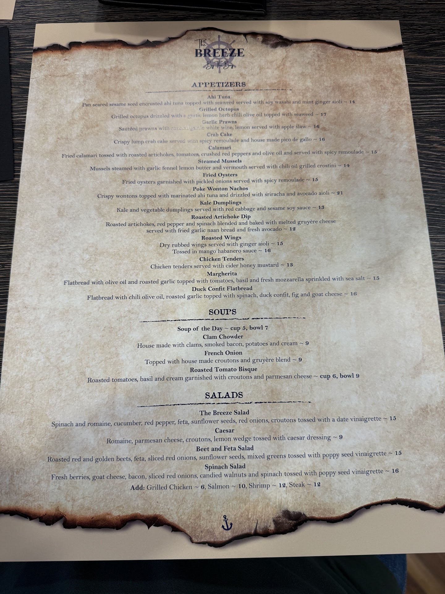 Even though it’s not on the ocean, I decided to try a swordfish sandwich because the menu has a lot of seafood on it. The seafood was fresh and my sandwich was delicious. I think the fries are frozen, but the coleslaw had apples in it which was really good.
