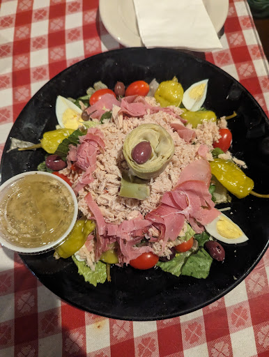 Read moreOverall a very enjoyable experience. We had a very attentive tag team of waiters who never skipped a beat. We ordered a trio of veal, chicken, and eggplant parmigiana over spaghetti. It was delicious and a very generous portion at only $20. We also ordered the baked ziti which I thought it was a little bland but my son enjoyed it and again it was a very good sized portion at a reasonable price. Both entrees came with a small garden salad that was so fresh and crisp. I would definitely return when in the area again and try some of the other menu items. The cheesy bread and the bread with goat cheese and figs caught my attention and now, having seen pictures from other reviews, I regret not trying them. Next time I might just go with appetizers and salad. The only thing that was a little strange was the seating policy. We entered at street level and since it was after 7 pm on a Wednesday night off-season, there were ample tables in the “grotto” but we were told that we had to go to the hostess station on the upper level to be seated downstairs. I waited there while my son went up to the hostess station. A couple minutes later a woman came down and tossed some menus on the table where I was waiting. Meanwhile we learned that there would be live music upstairs (he must have been on a break when we first arrived) so we decided to go upstairs instead. It’s just odd that the staff downstairs can’t seat people and notify the main hostess instead of sending people upstairs only to return to the lower level. It’s a lot of unnecessary up and down for both the hostess and the patrons, especially if you have mobility issues (no elevator). Other than that it was a great experience...oh, and the live music provided by Paul Warnick was...