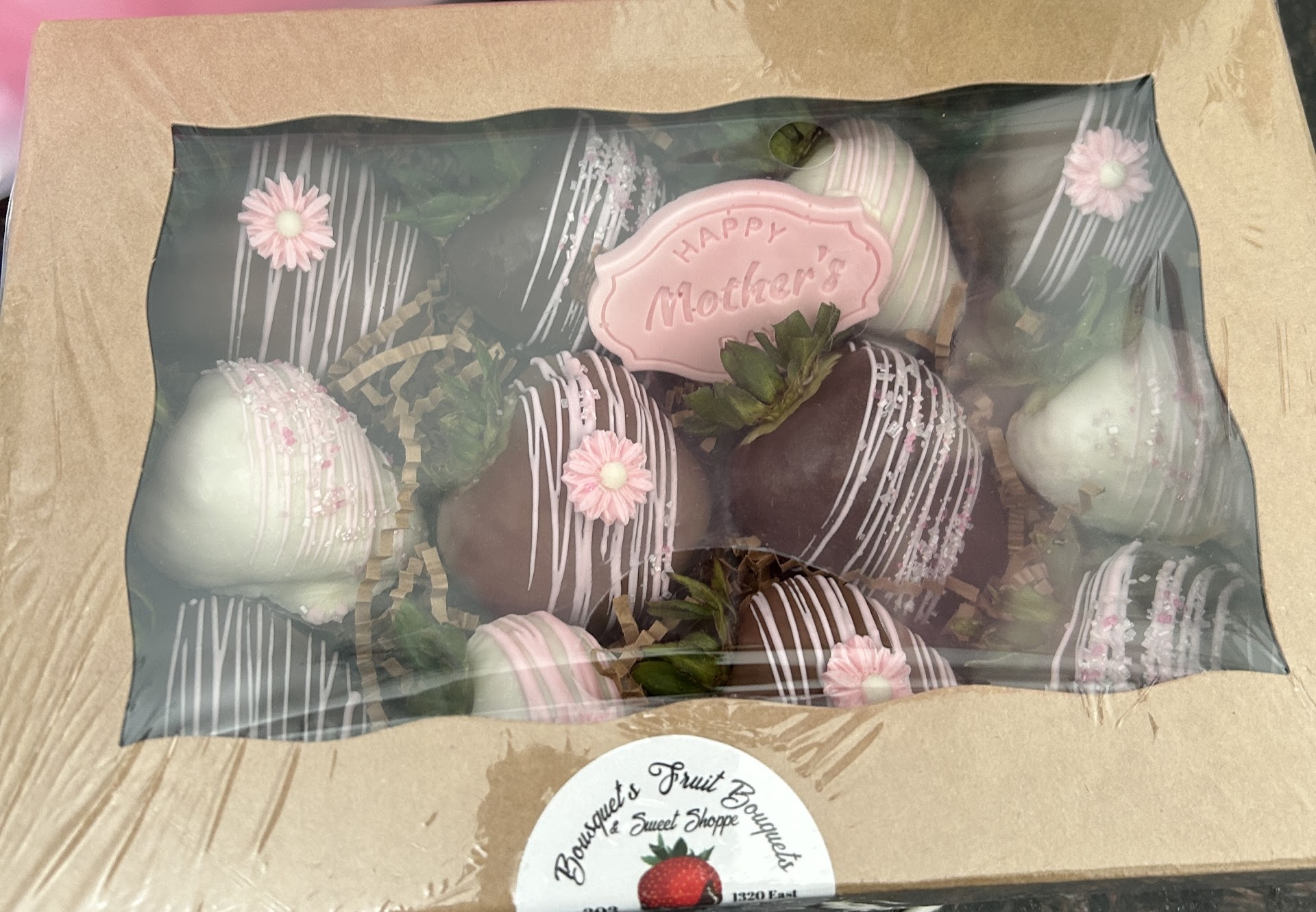 Such a beautiful box of chocolate covered strawberries. Not only beautiful but so fresh and delicious! My kids surprised me for Mother's Day and it was a wonderful gift. My husband helped out with the ordering and he said the owner was so accommodating, excellent service and follow up to ensure the order was done right before pick up so that we had the freshest experience. ...