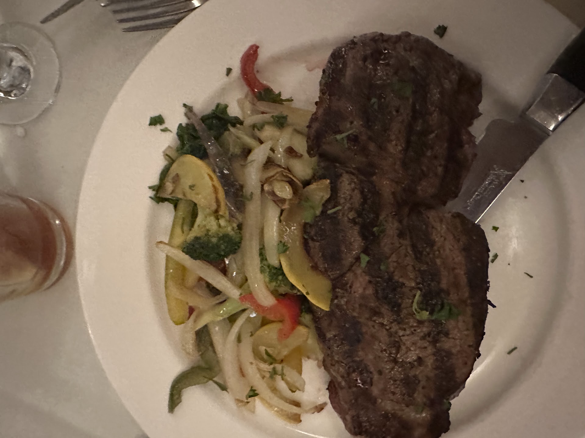 Read moreMediocre food quantity at best. My steak, was ordered medium rare and was served as a cool medium rare, so I canât complain too much there, other than I was a very fatty cut. (It is what it is). Because of the almost properly cooked stew, theyâve earned their 2 stars from me. Violiâs does not earn any other because of the leather tough veal piccata, the BOILED chicken Marsala, and because of my empty iced tea. You canât tell me it wasnât boiledâŠunless it was microwaved fully. My tea was empty for about 15/20 minutes, then when the waiter came by filling waters, the pointed and requested a refill. He said he couldnât hear me because it was too loud, which Iâll agree with, but contextual hints of the environment and each of our respective roles would lead the reasonable person to think I wanted more tea. Give me a break, it wasnât too loud for him to see me pointing towards my empty iced tea.