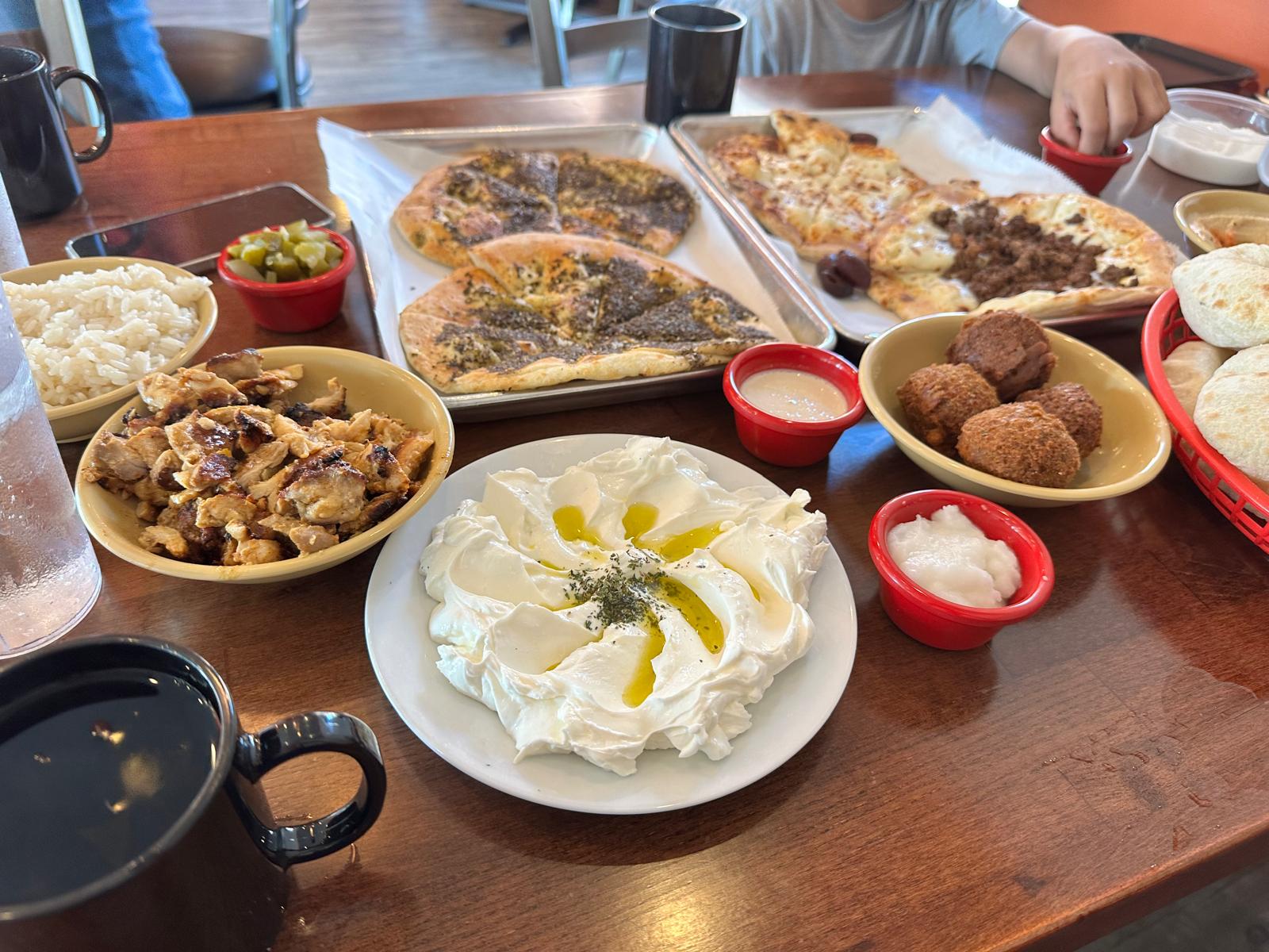 The menu offered a fantastic variety of Mediterranean dishes, and I was excited to try a bit of everything. I started with the Manaqeesh Zaatar—a perfectly baked flatbread topped with a blend of herbs and spices that was simply delicious. The Falafel was crispy on the outside and tender on the inside, bursting with flavor. The Hummos and Baba Ghanouj were both creamy and rich, the perfect accompaniment to the fresh pita bread. The Labneh was smooth and tangy, a delightful treat that I couldn’t get enough of.