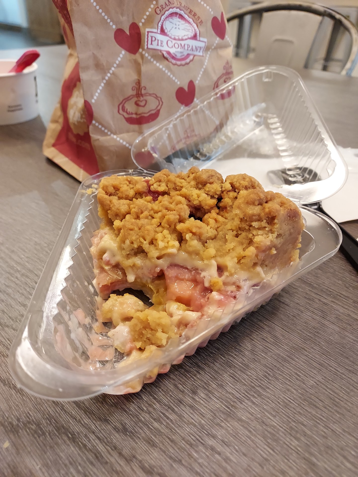 Read moreA weary Ohioan on the road such as I was, sought sustenance and found it within the walls of the Grand Traverse Pie Company and the delight I found led to a second visit on the trip! An absurdity you might believe but this is no jest, no harlequin story! After ending my long travel and hungering for dinner I ordered sandwiches and pie via the online order - and while it has a more limited pie selection than that in store, I found dinner - a satisfying sandwich, a slice of pie ala mode - all that AND A BAG OF CHIPS! And when it came time to find breakfast for a large party, they had ample seating, both indoors and outdoors on a Sunday morning, a prime time for brunch. We all enjoyed quiche, a strange egg based breakfast pie, as well as pumpkin'd bread and a dessert pie. And I have not been cursed with divine madness, but all members of the party were able to share the meal for less than $10 a person! A blessed price at a...