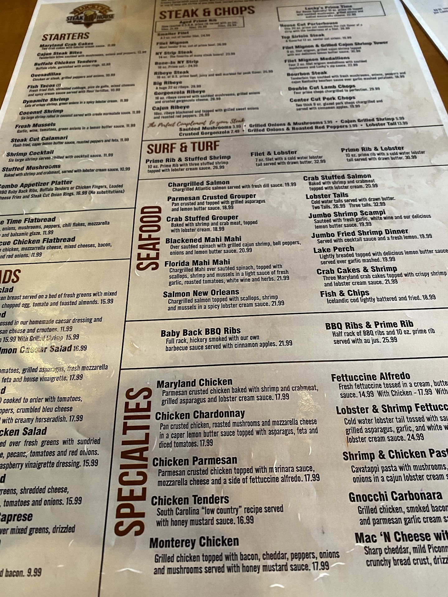 Read moreI have now been here twice and would say it is okay. I went for the first time with my husband and toddler on a Saturday around 4pm. We were seated quickly and at first we’re satisfied with our server. After she brought our food out (which came quickly) we didn’t see her again for at least 20 minutes if not 30. When she came back when we were all finished and waiting to ask for boxes, she smelled strongly of cigarettes. Food was good overall that time. My husband got the filets mignon and fries and liked it. My toddler got Mac and cheese and likes it as well. I did not care too much for mine. I got the lobster and shrimp pasta. The noodles were overcooked and mushy and the lobster was overcooked and chewy. I did not care for the sauce either. I did like the Caesar salad though. Perfect combo of romaine to dressing. The second time I went with a friend and 3 young kids on a Friday around 11:30am. We were seated quickly but waited about 15 minutes for our server to acknowledge us. This time the food took quite awhile. It took probably 30-40 minutes to arrive. As we were waiting my toddler spilled her milk in the floor and it took my forever to find any server to ask for something to clean it up. After I was eventually able to clean it up myself, our server never asked if I wanted another milk (I would have happily paid for it) and by the time I thought to ask she had disappeared. Food was mostly good this time as well. The Rachel sandwich was huge, but they did forget the thousand island on both orders. Kids pizza and Mac and cheese were also huge and the kids liked them. The kids grilled cheese was pretty bad. A single slice of cheap looking cheese on each slice of bread barely melted on hard bread. I am not sure if we will be back or not, but time will tell. Prices are very good and menu is large with quite a bit of variety. I am giving it a three for the food, but service is definitely...