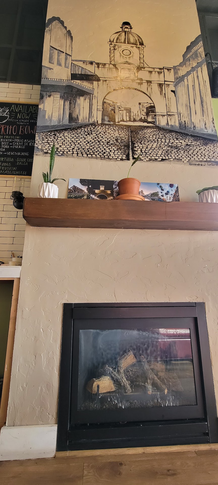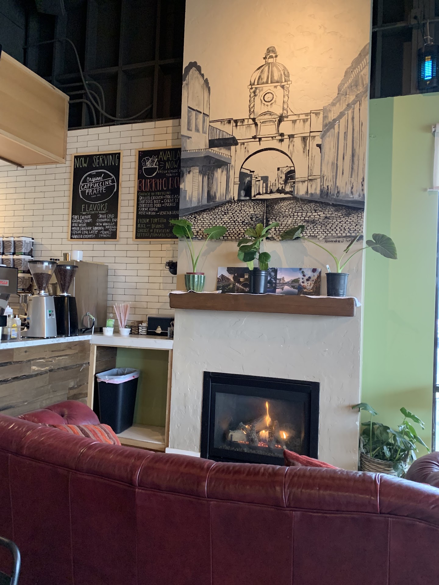 Walking in, you would have never known it was a different coffee shop. I didn't even recognize the place. It is completely stunning. I love the bright walls with the big pictures. The first thing that caught my eye was the beautiful art piece above the fireplace, it's gorgeous. The plants added a welcoming touch. As vibrant as the yellow walls were, it wasn't overwhelming.