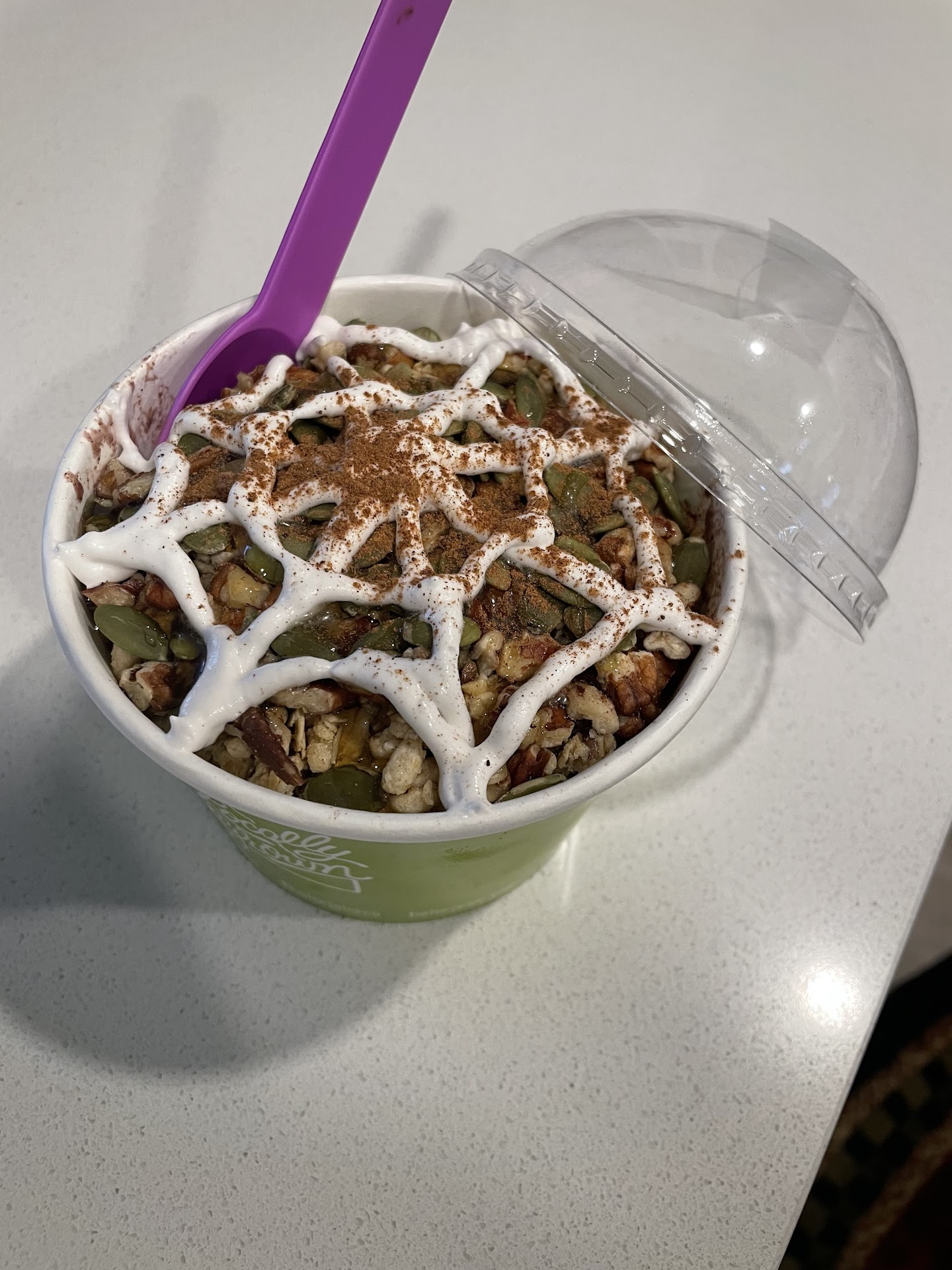 In response. I ordered the Popeye Bowl but I asked for no pineapple. But no there was no granola on the bottom maybe they could have substituted something besides the pineapple like some extra granola or granola at all I had a little sprinkled on top but like I said it was mostly just mush and yeah he didn't ask me is there granola on the bottom I just told him there's no granola or not enough granola and actually think I did tell him there was no granola at the bottom and tried to show him and he just didn't even make eye contact with me started punching buttons on a machine I didn't know even what he was doing and then told me there would be a charge which I I needed the granola so that there was textured to my mush and I understand it's very healthy mush and apparently high grade granola but he said it was their policy if anybody needed anything more they had to charge didn't ask me was it missing something didn't have a discussion with me literally made no eye contact with me so yeah I was a little disappointed in his service. Especially when I'm paying 16 or $17 for a bowl and I asked for two tablespoons of granola. There should be something where you try to keep a test customer satisfied in the moment not...