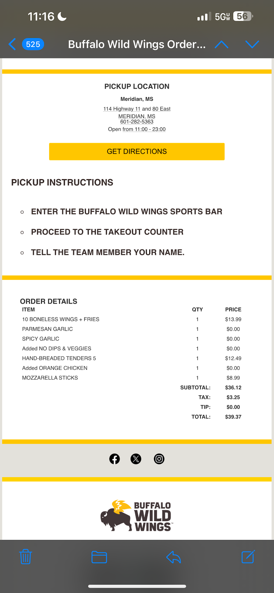 Read moreWe got overcharged and instead of fixing the issue the server continued to argue and make claims that she didn't say what she had initially told us. My husband and I both heard this and we changed our order to the "deal" she said they had so we could eat for cheaper since we are on an unexpected trip. The server explained to us that on Tuesdays, traditional wings are on sale. My husband and I were discussing our order with her and each other claiming we did not like traditional as much as boneless, however if traditional was cheaper we would order those instead. She claimed that the traditional were 1/2 off on Tuesdays so we settled for 20 traditional. This was the whole reason we came to Bdubs. We knew the wing days were Tuesday and Thursday, however we didn't know the current deals. We got our bill and it was $28 and we asked the server along with another server why it was so high and they both argued with us and our server claimed she never said that the traditional were on sale, but that the boneless were. The manager eventually took care of it after not wanting to listen to our complaints. We could have easily disputed the order off of our credit card but we told them if they just charged us for what they would have if we ordered boneless in the first place then we would settle. He eventually did after arguing with us some more. Buffalo Wild Wings in Peoria, IL is our regular Bdubs and it has always been a very good experience! This Bdubs needs to care more about customer service rather that arguing about who's right and who's wrong in a misunderstanding when two people hear one server say something and base their entire order off of what the server said! Especially since we were discussing the whole thing with her and explaining we were here that night...