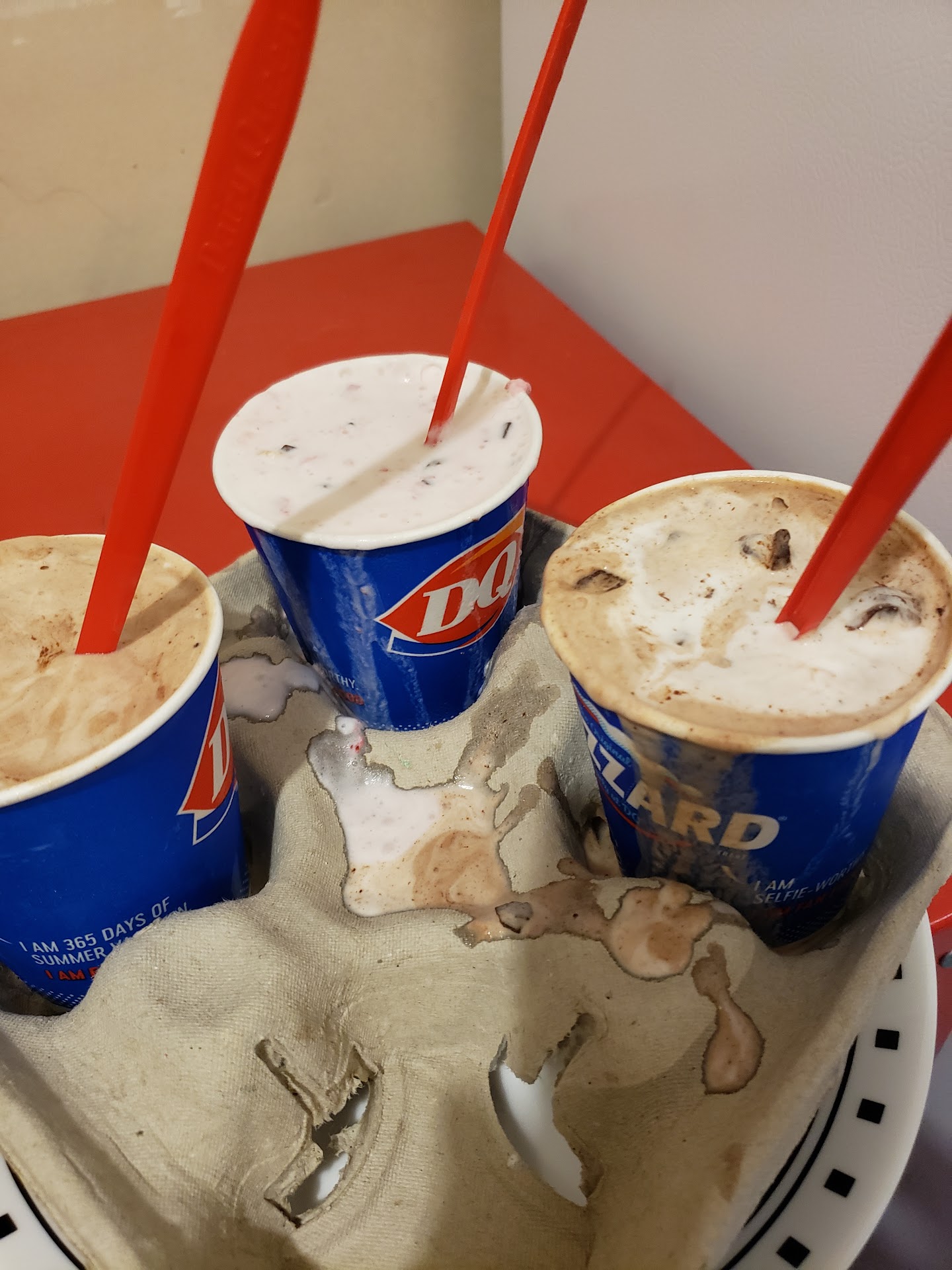 The blizzards still came out great and didn't drip when tipped. I wish I could have gotten the name of the girl that added some sprinkles to my girls' ice cream cones for having to patiently wait. That made their...