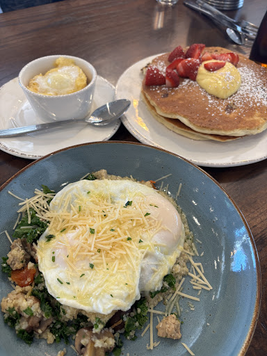 Read moreStopped by on a Sunday and was seated in under 30 mins for a table of 2, even though they were pretty busy. Ordered the Kale Tonic, buttery grits, Pesto Chicken Power bowl, Power breakfast Quinoa Bowl and an order of lemon ricotta pancakes.