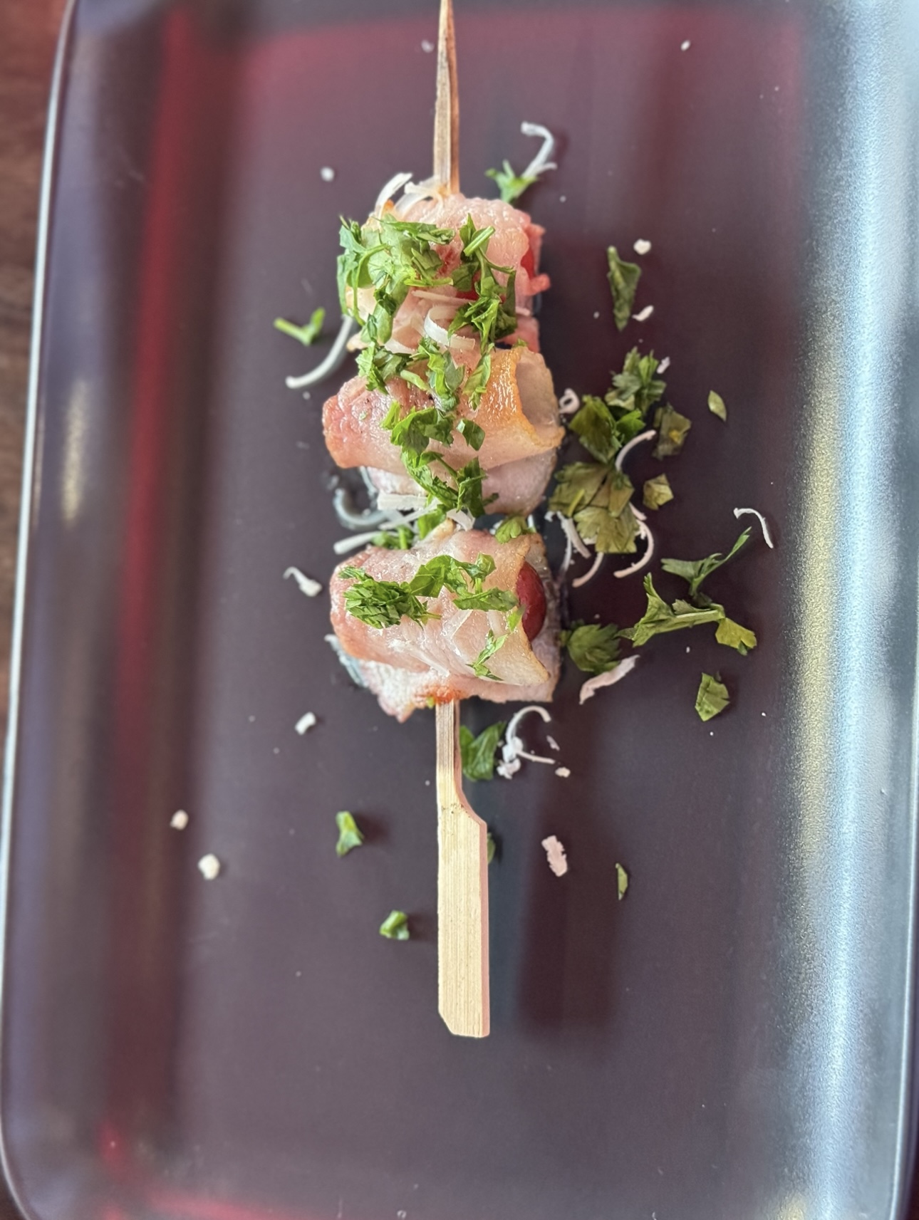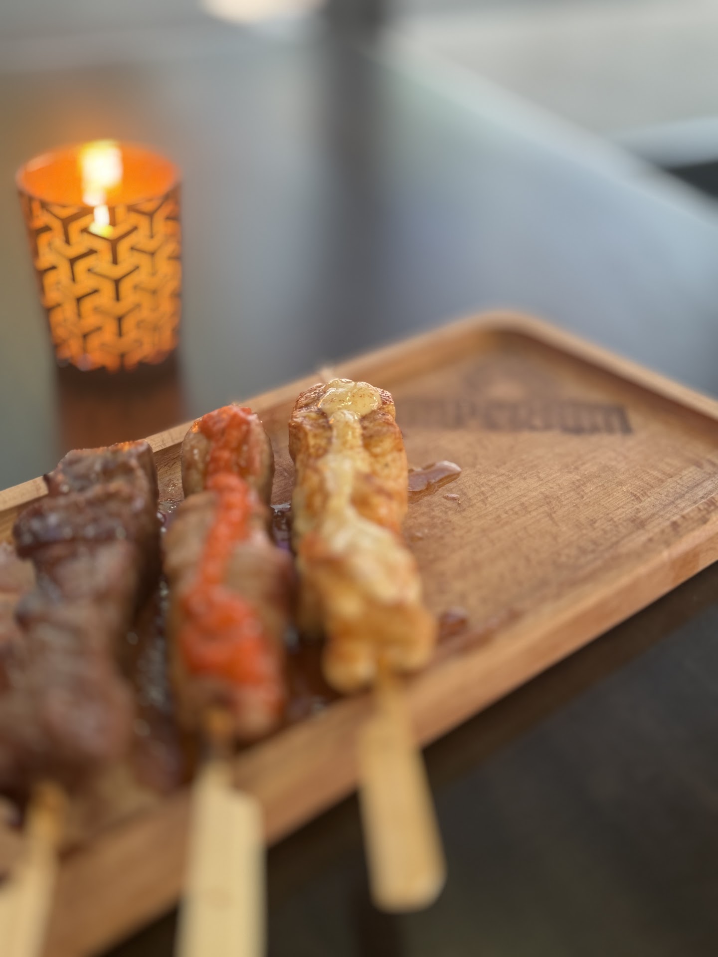 We ordered chicken thigh, pork belly, and ribeye meats with the bacon wrapped mushroom. The food was delicious, BUT it was very small portions. What was missing was some sort of side dish such as a rice or mashed potato or vegetable option included with the meat skewer.