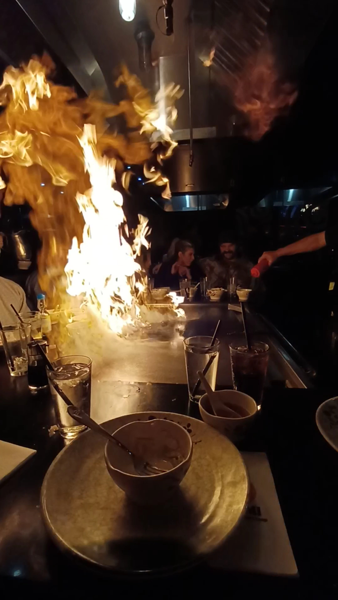 Not sure where to begin. If I could give zero stars I would...had reservations for an early dinner, showed up and they weren't ready for us, had to wait almost 10 minutes to be seated while they got the table ready. Even though they had our name on their books they seemed surprised to see us. They had 2 "hostesses", if you could even call them that. The way they were dressed they should have been working at Hooters. Wearing skin tight legging material type pants and short, almost bra like, shirts. If I wanted a show instead of an expensive dinner, I would go to Hooters and not bring my kids. Once seated it was so dark you could barely see who you were sitting with. The music was ridiculously loud and kept skipping and glitching then starting the same song over and over again, not to mention you had to yell over the music to talk to anyone. It was so loud that the waitress had to keep asking us to repeat ourselves. It took forever to get our drink order in and then again to place our food order. There were only 2 other hibachi tables that already had their food so not sure what the issue was. Our chef eventually came and started cooking but you could tell he was in a hurry. We had 2 young kids and 3 older kids who were looking forward to a show and we got nothing. A few spatula bangs on the grill, a small fireball once and that was it. When it came to when he is supposed to throw the food into your mouth he literally just launched it at our faces, he didn't even give you a chance to get ready, he just threw it at you, then didn't give you a chance to recover before he threw another one at you, hitting you in the face or the head and then moving on to the next person. He cooked as fast as the food would allow, to the point were the vegetables were raw, a tiny bit warm, but raw. The steak, chicken, shrimp, and rice was mediocre but definitely not worth the prices. I also ordered Tobiko, flying fish roe sushi. I know enough about sushi to know the difference between flying fish roe and smelt roe. When the menu says flying fish roe, I pay for and I expect to get flying fish roe, not smelt roe! Once we were done it took forever to get our bill, then even longer for them to come get our card and bring it back to us. We will never go back, it was very...