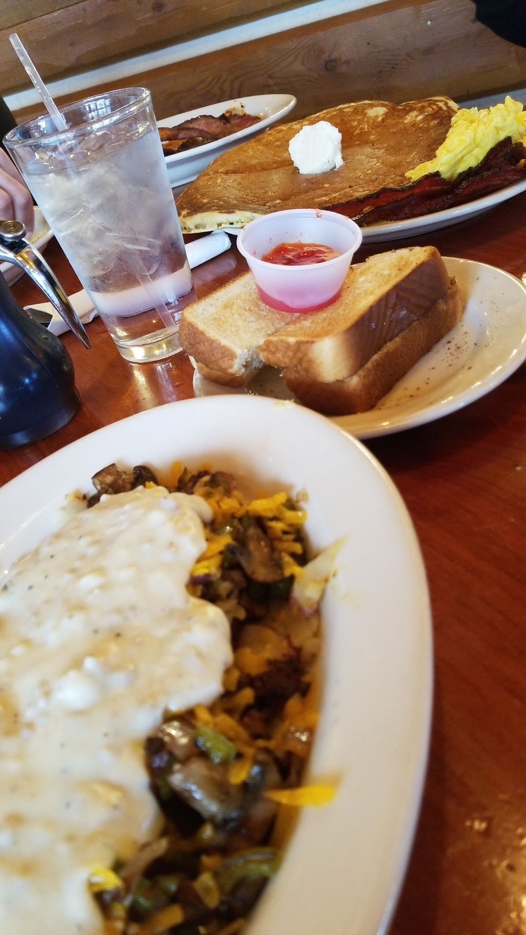 Read moreWe’ve been here twice now. First time was great. I had a morning mule and classic breakfast. I don’t like pepper bacon but I didn’t think it could be substituted. Anyway my food was great portions huge. My wife loved her meal as well and service was great. Second time not so much. Our waitress was a short gal who had black hair and seemed really unhappy to be there. I get it work sucks sometimes but when your working in service industry and especially for tips it helps to be nice. She never brought our toast until the very end when we had to ask for it. She seemed like she had a bad attitude too. We came in at 1:15 which was 45 mins before closing and even asked if it was ok to be sat since they closed at 2. Which the hostess said it was. I did ask for crispy bacon which I didn’t get. Never got checked up on for refills or anything. They made the drinks very strong. My wife had the spiked coffee drink and she was hammered by the time we left. I do think we will be back but one of the servers made a comment to the other one about her needing to smile more. Not sure if that was her but we felt rushed and unwelcome this time around. The breakfast was so good though so we would come back we just hope we get someone else’s” Section as our waitress seemed very down and depressed. I do hope that she is ok. ( edit update came here again. 7% surcharge for egg dishes due to the rising cost of eggs even though egg prices have been declining in March. We were here on 3/13/25 and it was 90$ for 4 people for breakfast. There was a charge for egg inflation of almost 7$ tacked on. Egg portions were much smaller. Service could’ve been better. Had to ask for items multiple times and did not recieve crispy bacon 🥓 like I had asked for nor did I receive my strawberry jam that I asked for. We will probably be looking for a different breakfast place...