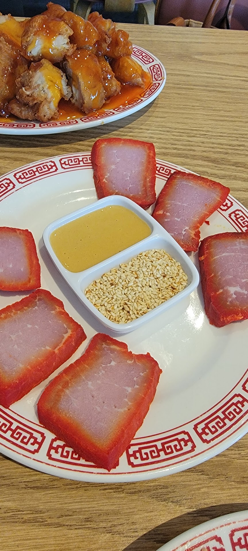 Mandarin and Orange Chicken: placed together on a plate so unsure which was which. Itās chicken thigh and pretty fatty. How they bread huge chunks of thigh together so lots of it is over cooked. Itās kinda chopped up in massive chunks which makes it rubbery as well. One of the sauces was okay flavor wise, but not which one. Again, large portion but horrible quality of meat. Iād be okay with half the meat portion if they used chicken breast and did small bite size pieces. The breading itself was tempera style and not bad, but the execution just killed it. Majority of this left on the plate untouched.