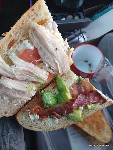 We were fortunate enough to be passing by and were welcomed in during the pre-opening VIP event, and learned some interesting history about Kneaders. Amy explained the importance of keeping ingredients fresh, and simple, and that being family owned and operated, that bringing families together is core to their operating model. She gave us a very informative tour including an explaination of how they make all of their bread in ovens imported from Italy, which reach temperatures of 600-1000° during the baking process to give their bread the perfect bake! All of their fresh baked bread is made from a short list of simple ingredients, with nothing more than flour, salt, water, and sourdough start. It was interesting to hear the explanation that because sourdough starts absorb the ambient yeast, that just like honey being influenced by the flowers they polinate, that the ambient yeast gives each location's bread a unique flavor profile. We learned that they have kept their sourdough start alive and well for nearly a quarter of a century since purchasing a start that was already over 1,000 years old. We got to meet Justin, the "bread whisperer" who has been making Kneaders bread for over 19 years (as of 2025), and is working on their top-secret new pastry recipes. Even though the staff was "training" everything was clean, orderly, and running like a well oiled machine. Even though the restaraunt was full and staff was still "training" our order was quickly and accurately prepared. We will...