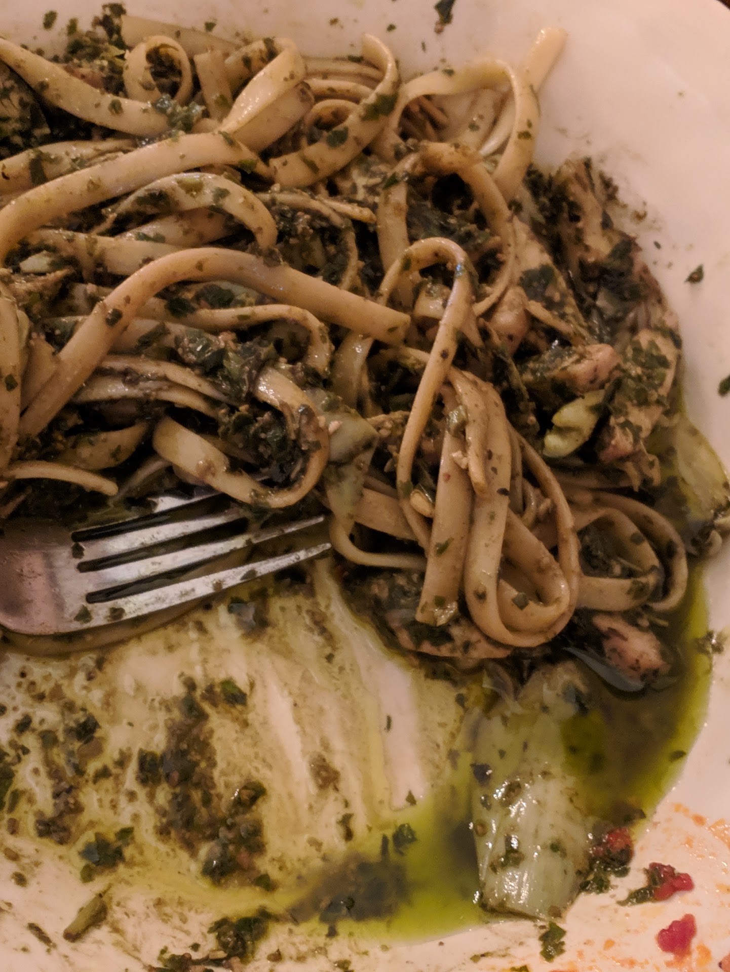My wife's food was bland...exceedingly bland. Pesto can be a delicious sauce filled with garlic and flavor! Not at Louie's. Here it's bland and in heavy need of seasonings. Speaking of salt, it's also clear the pasta wasn't boiled in water with salt or even olive oil. Strange choice for "authentic Italian cuisine." I digress though, what it did come with was a heavy dose of oil! Watch out Louie! Don't let the government know or you'll be "liberated" within the week.