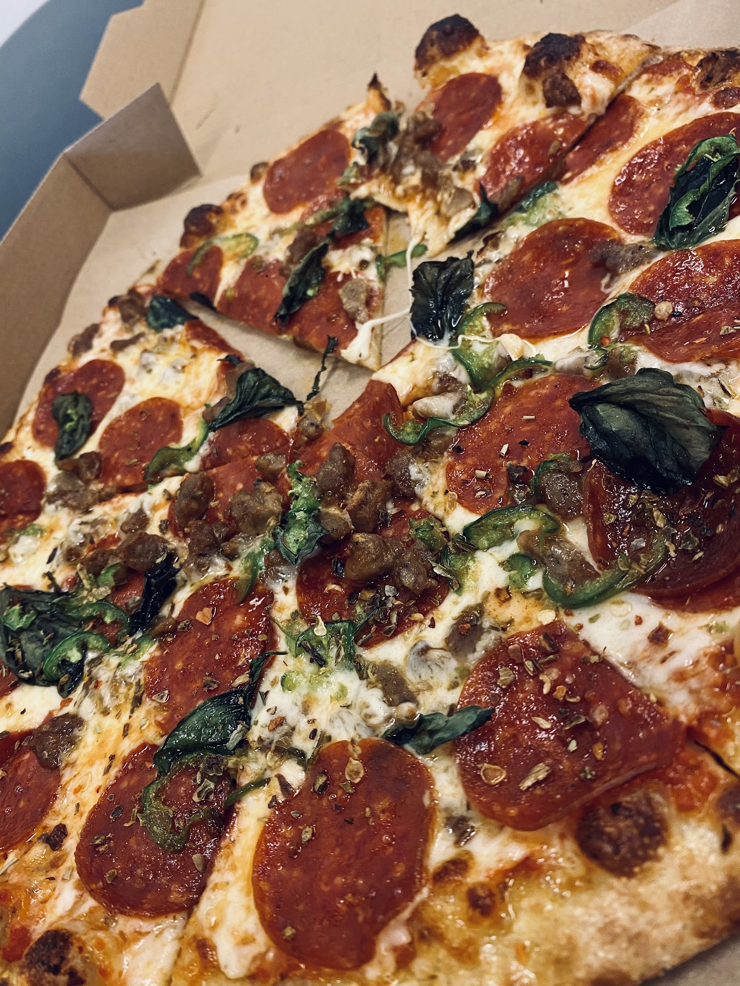I love they can make the crust little crunchy so it wasn't soggy at all. The amount of cheese was perfect, no need to add extra cheese, and the meats were delish. The employees were super helpful, kind, and friendly!