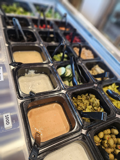 I love that the cheese was placed all the way to the crust! It made the whole slice enjoyable. The sauce to cheese ratio was great, saucey and cheesy! Whoever made the pizza didn't skimp on the salami. The crust was thin and not overwhelming thick. The small was the perfect size for the two of us. We still had a half a pizza to take home! My salad was so good! I loved the green olives and artichoke hearts which aren't options at other pizza salad bars. The cherry tomatoes and cucumber were fresh. Each bite of my salad was different cause of all the goodies put on it! The ranch dressing was good! The blue cheese dressing a good, it had huge chunks of blue cheese! The Italian was ok, it's Italian. The one thing I didn't enjoy about the salad was picking out all the old and slimy pieces of lettuce. I can understand a few but it was a lot. I wouldn't want to eat it so I would never serve it to my guests.