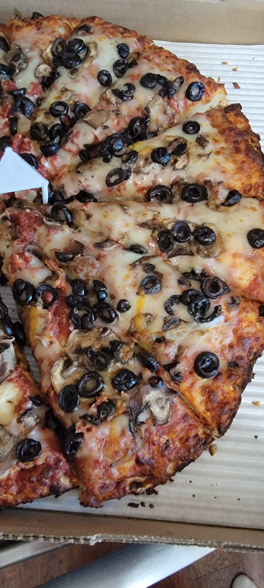 The pizza looked delicious. The taste just wasn't there. The crust was thick, there was hardly any sauce, and just no flavor. Usually, my crew devours 3 large pizzas. We had 2 full pizzas and almost all the cheese sticks left because no one liked it.