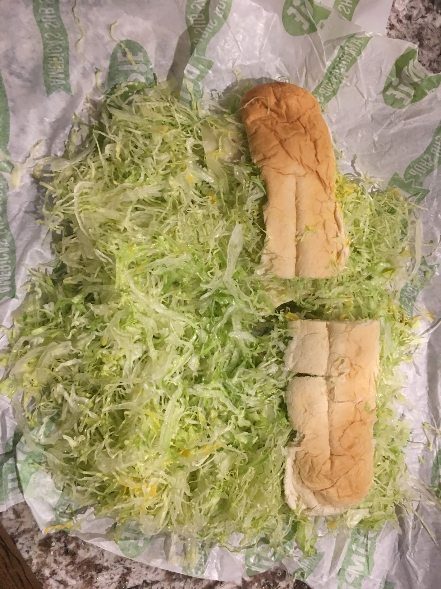 I received very poor service from this Meridian store. I left the house in the worst snow that we have seen in the Treasure Valley for a special trip to Blimpie. While ordering my sandwich I asked for extra lettuce. When I pulled up to the window there were three individuals at the counter while one made my sandwich. There were no other customers in the store or in the drive thru line behind me. As they made my sandwich they continued to laugh but I did not think much about it. I figured they were likely over staffed due to the weather and were horsing around. After my sandwich was complete and bagged up it was placed on the counter close to the window but the three individuals kept laughing and one by one went into the back room out of my view. I could see the sandwich waiting on the counter and could continue to hear them laughing and talking. We waited in our vehicle for several minutes until one of them finally returned and handed out the sandwich. The weight seemed much heavier than I was used to but I placed the bag on my passenger seat and drove home. When I got home and unwrapped my sandwich there was so much lettuce that I at first was unable to see the bread. After sifting through the lettuce I found the sandwich that was now soggy from the wet lettuce that had been wrapped around it. I removed the sandwich from the wrapper and still had 20+ ounces of lettuce within. I cannot possibly begin to illustrate what this looked like so attached a picture for reference. This is a result of three individuals providing the worse customer service possible and giving their location a bad reputation. I love Bimpie and will continue to go for my sandwiches but this is a location that you might...