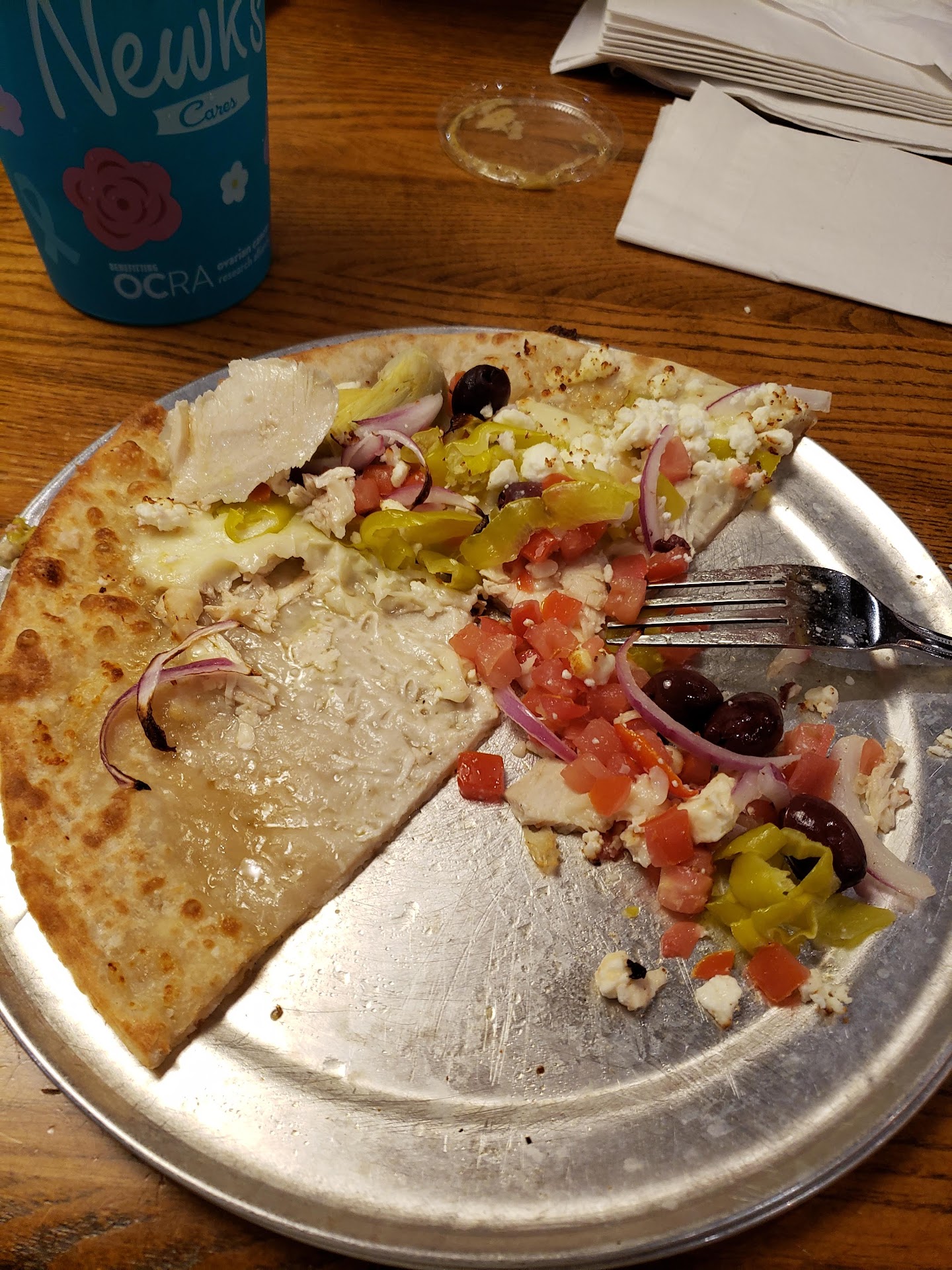 Read moreWe eat regularly at the Newk's in Hattiesburg, and on occasion have eaten at the Newk's in Ridgeland . We were on our way back home from a trip up north so decided to try the Newk's in Meridian. I'm sure the crew needs encouragement, but my wife asked for the salad with dressing on the side, but it came with a ton of dressing already on it. They quickly made that right. No problem. I then got the Mediterranean pizza, my favorite pizza at Newk's. It was cold, undercooked (just look at the color of the toppings and crust), and really disappointing. Just look at the pic. I know we can say something in the moment but we were not wanting to wait around. Very disappointed and won't be stopping at this Newk's again. Sorry. I also truly dislike 'asking for a tip before we get the food' at any of the Newk's. That isn't necessary. On this occasion it was a small token tip, but wasted. I also added a pic of the same pizza from the Hattiesburg Newk's from Oct. 11. And I added a pic of my wife's salad, the same one she ordered in Meridian. Very nice. No comparison in food quality, presentation and taste. I read through a few of the reviews before posting, and it appears the manager or ? is responding to the reviews, hopefully making improvements. Glad to...